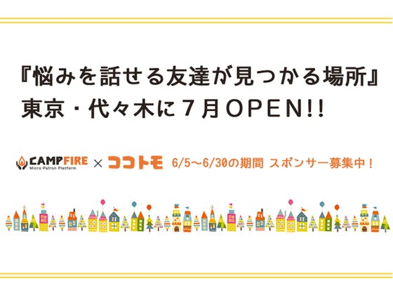 2015/07/01 16:15 ━━━━━━━━━━━━━━━━━━━━━ 悩みを話せる友達が見つかる場所『ココトモハウス』を東京・代々木に!7月OPEN! ▽プロジェクトの概要はこちらhttp://camp-fire.jp/projects/view/2391 ━━━━━━━━━━━━━━━━━━━━━ プロジェクトのご報告 6/5~6/30の約1ヶ月間。支援金を募集していた、悩みを話せる友達が見つかる場所「ココトモハウス」のプロジェクトですが、本日をもって掲載終了となりました。 結果としては、達成できませんでした。 プロジェクトを応援してくださったメンバーならびに外部の方がたの期待にお応えすることができず、大変申し訳ありませんでした。 この挑戦を通じて、自分の力の至らなさを感じましたが、皆さまがたくさんのシェアを行ってくれたため(facebook=428シェア・Twitter=121リツイート)、ココトモハウスの存在を広めることはできたのではないかと思います。ココトモにもたくさんの応援メッセージが届き(メッセージは→こちら)、何度も励まされました。皆さま、本当にありがとうございました(;_;) メンバーたちの出資協力によりココトモハウスの実現はすでに決まっているため(7月下旬OPEN)、引き続き、今できることに最大限力を入れていきます! 最後になりますが… 今回、準備から告知まで協力してくれたココトモハウスチームのメンバーたち(ぽちころ、ジョジョ、organ、えが、さとう、ステビア)には本当に 助けられました。また、掲載からサポートまで行ってくれたCAMPFIREの方がた、大切なお金をご支援くださった方がた、そして、応援してくださったす べての方がたにお礼を申し上げます。 ありがとうございました(*´`) ゾノ もっと見る