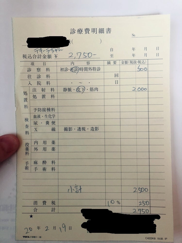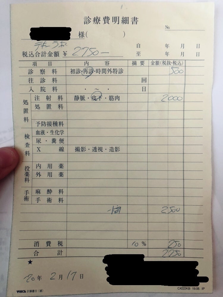 1回2,750円(税込)を2回受けたので合計5,500円になります。