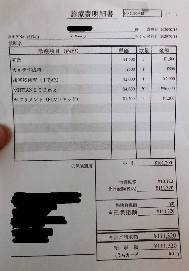 その他、初診料、カルテ作成費、超音波検査費、貧血のためのサプリメント代