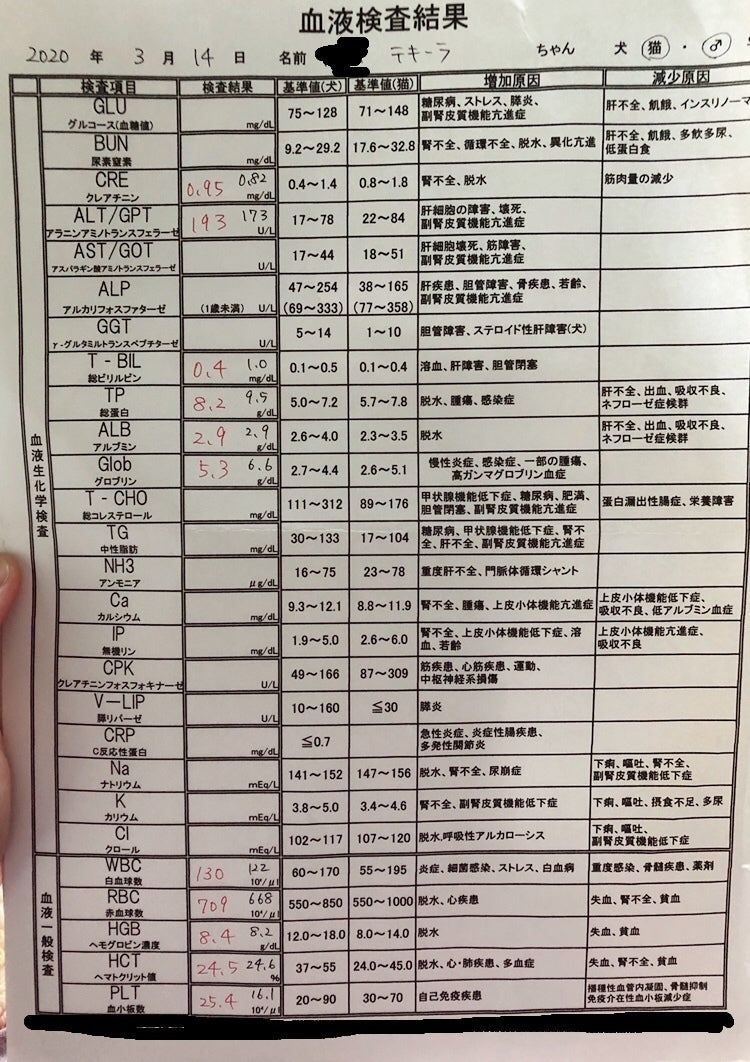 血液検査結果↓