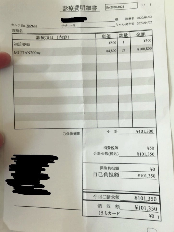 ↓コロナの影響なのか、薬が病院に届かないというハプニングがあり、現病院の先生からお話しいただき他の協力病院様から1週間分(600mg計算)を処方していただきました。