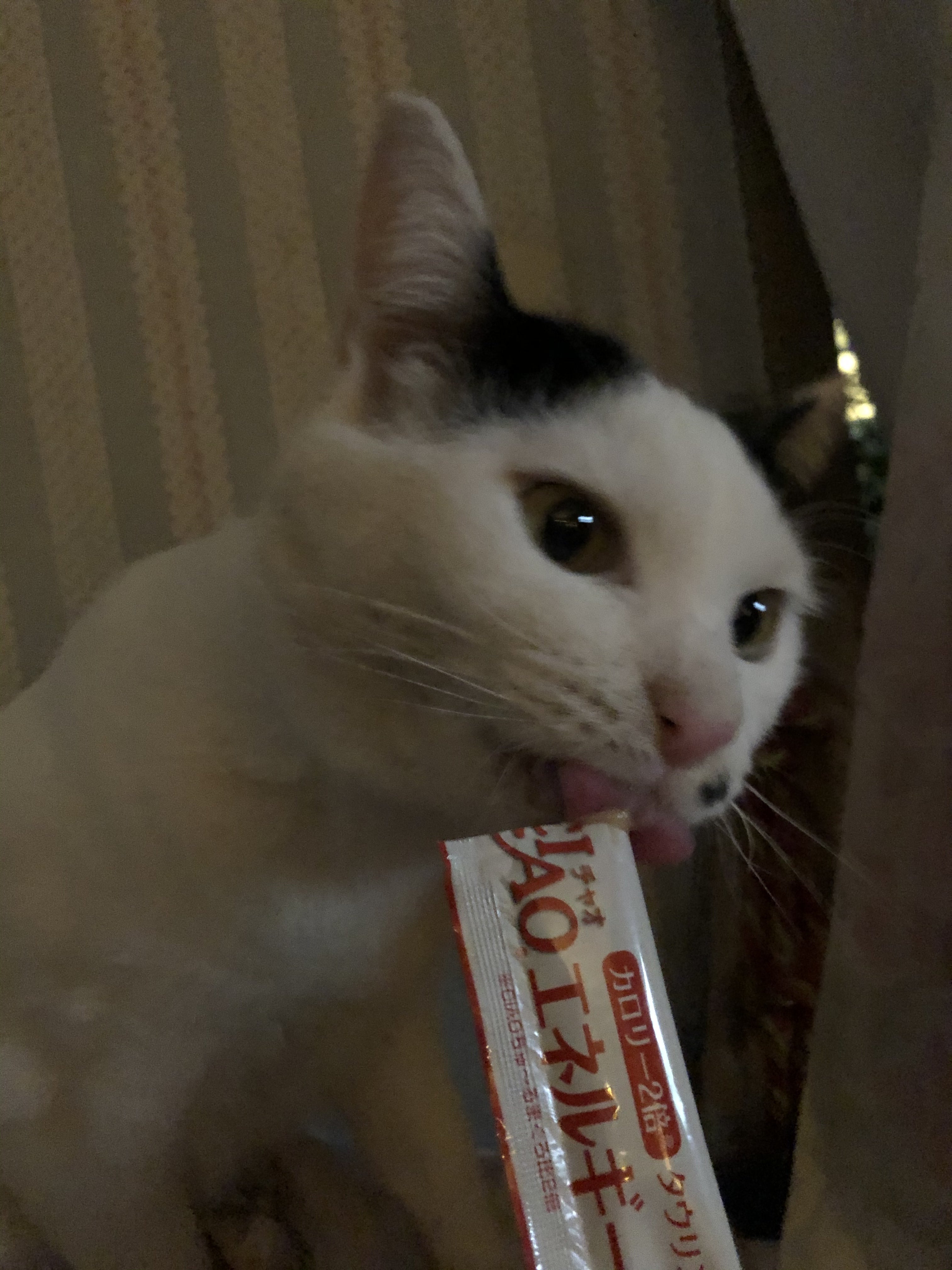 大好きなちゅーるを久しぶりに!元気になったねで薬のイヤイヤが凄まじく投薬失敗しないかひやひやです。もっとテキに負担なくスムーズにあげれるようにならねば。