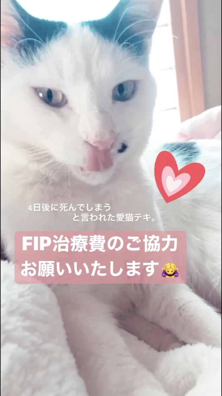 テキのmutian投薬3週目の様子です。 投薬15日目のテキ↓ mutian投薬量500mg 朝から元気!ご飯もカリカリ、缶詰、ちゅーるをしっかり食べてくれました。 ただお薬は嫌で、あげおわったあとはカーテンの裏に隠れてしまいました。写真も不機嫌です。 投薬16日目のテキ↓ 投薬14日目から体調がかなりよくなっています!少し前まで歩くのもおぼつかなかったのが嘘のようです。嘔吐もなくなり、毎日しっかりご飯を食べてくれます。 投薬17日目のテキ↓ 日向ぼっこもできるようになりました。久しぶりのテキに他の猫も興味津々です。ご飯はドライフードをよくたべるように!獣医さん曰くドライフードは少量でエネルギーをいっぱいとれるそうです。ただまだ100%の食欲ではないので、処方していただいた食欲増進剤をあげました。 投薬18日目のテキ↓ 食欲増進剤あげていますが変化なし。もうちょっと食べる量が増えて、体重が増えてくれるといいのですが。 投薬19・20日目のテキ↓ 日向ぼっこ中で気持ちいいのかベロが。笑 具合がよくて元気な時とそうでない時で交互に波があるようです。この日はあまり具合がよくなくて、元気がありませんでした。ここ数日とても元気がよかったから不安です。ご飯も少しだけでした。食欲増進剤効いていないのかな? 投薬21日目のテキ↓ この体制が気に入ったのか全く動かない、本当に甘えん坊でかわいいです。食欲増えてきました!エネルギーちゅーる3本に、ドライフードをお茶碗2杯も食べてくれました。えらい!夕方になると少しぐったりしますが、このまま食欲どんどん増えてほしいです。 *定期検診は2週間に1回になったので、今回はありませんでした。 以上が3週目のテキの様子になります。 少しずつ回復に向かっています!体調にムラはありますが、元気に飛び跳ねている日もあります!FIPとわかった直後と比べると信じられません。 応援してくださる皆様、本当にありがとうございます!このまま治療終了までテキと頑張ります! ▼Instagramやツイッターではほとんど毎日テキの写真や動画などの様子をアップしています!よければ見てみて下さい! Instagram : @t.e.k.i_7 Twitter : @tekiteki7777 引き続き拡散のご協力頂けますと助かります!
