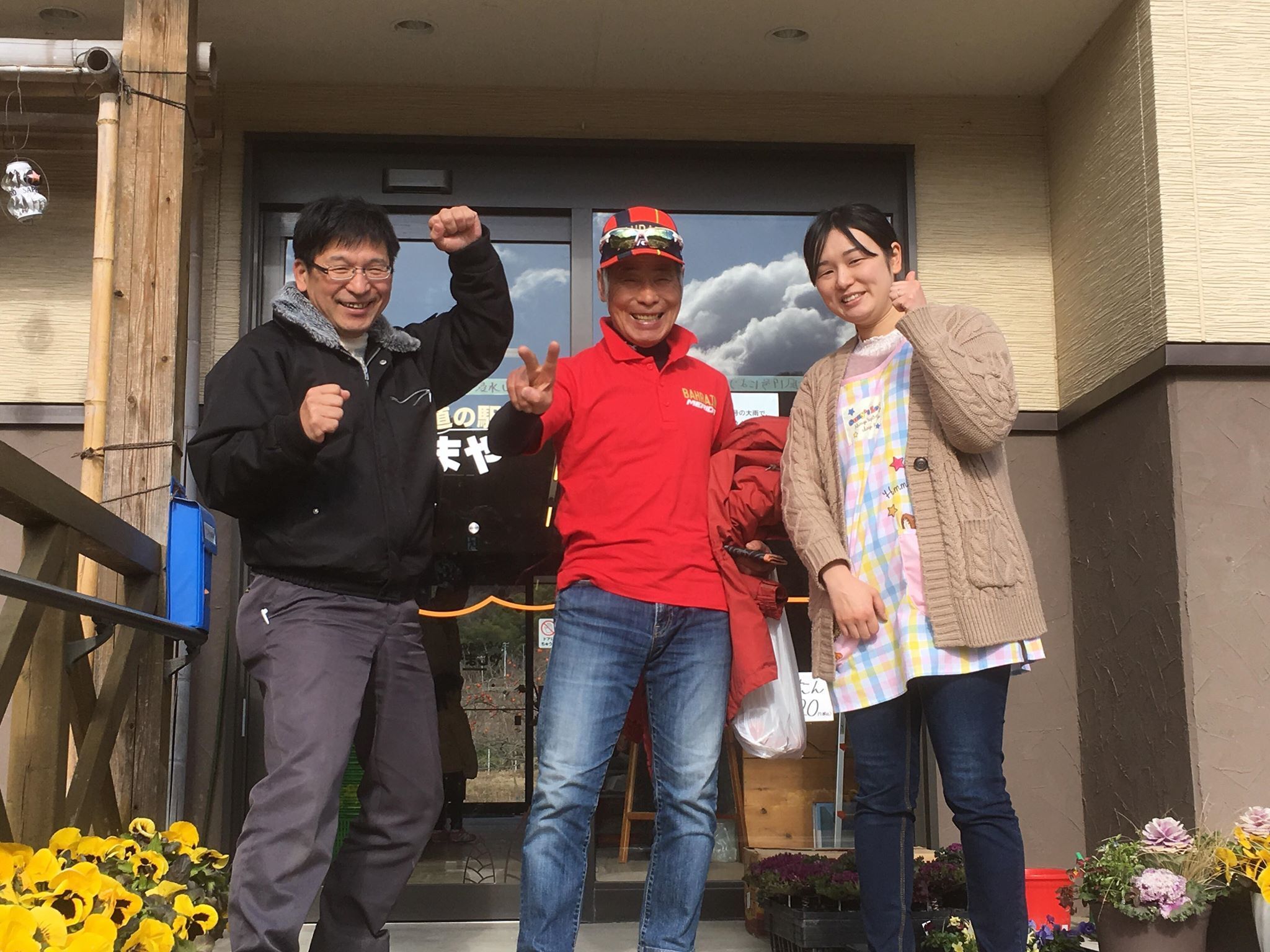 応援コメントNo.5 横尾功さん。自転車乗りの間では「レジェンド」と呼ばれている、有名人です。ふとした事で知り合いになり、それからはお世話になりっぱなしです。台風後のご支援も山ほどいただきました。冬はスキー、それ以外はサイクルリスト。いつも元気な横尾さん、うちのランチを気に入っていただいています。こんにちは! 横尾です。11月30日の再オープンの日以後、スキー場のオープン準備、営業等々でご無沙汰していました。台風19号からの立ち直りに賭けるご家族皆さんの気力、忍耐力には圧倒されました。やしまやサンとの出会いはサイクルフェスタ以前にプライベートで丸森を自転車ライドで立ち寄り、「私の友達がこの辺りなのですが分かりませんか」と尋ねたのが始まりでした。何と哲郎さんの伯父さんとの事でした。それ以降ホットステーションとして寄らせていただいて現在に至ってる次第です。私が一番感動したのは台風19号の被害復旧作業で大変な時の事でした。微力ながらお手伝いさせて頂いた時、休憩時間に「今日は横尾さんの誕生日です!」とケーキまで準備してボランティアの方皆さんに祝って頂き、涙腺が緩み堪えるのが大変でした。八島さんご一家、皆さんの心の優しさ広さが、皆さんを寄せる元と思わされました。これからも無理な事言いながら立ち寄らせて頂きますので宜しくお願い致します。横尾 功3/12のウッドデッキに塗装する会にもご参加いただきました。みんなでお祝いしましたよ!横尾さんの誕生日、この笑顔 最高!!