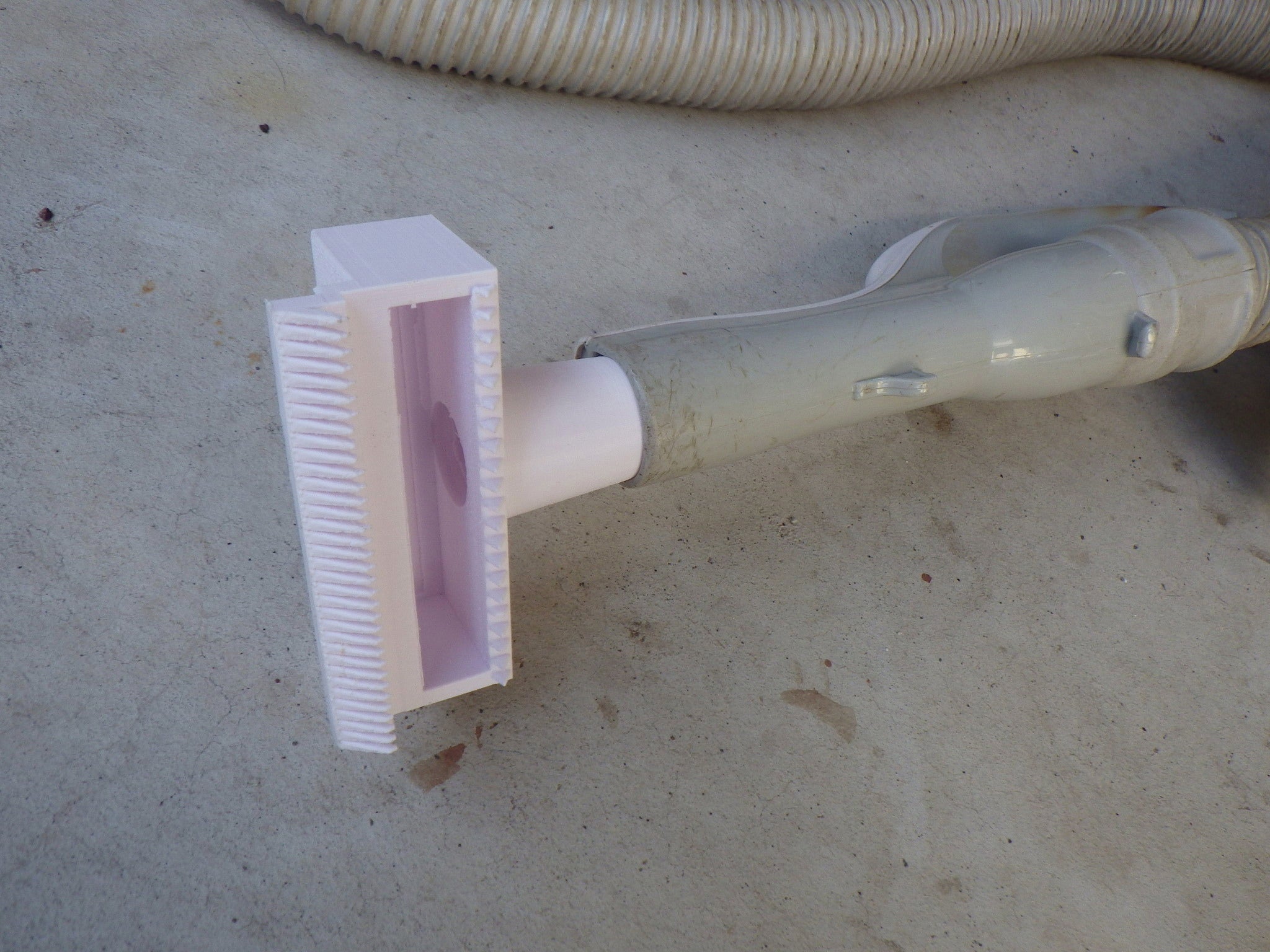 掃除機に取り付けることができ、毛ができるだけブラシに絡みつかずに連続で作業ができるものを作れば作業が楽になるはずと試行錯誤の繰り返しでした。この製品の一番のポイントはブラシの刃の角度です。掃除機の吸い込み気流で抜けた毛を吸い込ませることをおこなっています。ブラシに多少毛が残る時がありますが、ブラッシング時に毛に押し当て少しもとの方向に押すことで毛は取れます。もちろん毛にかくれたほこりやゴミも掃除機の力で吸い取ります。