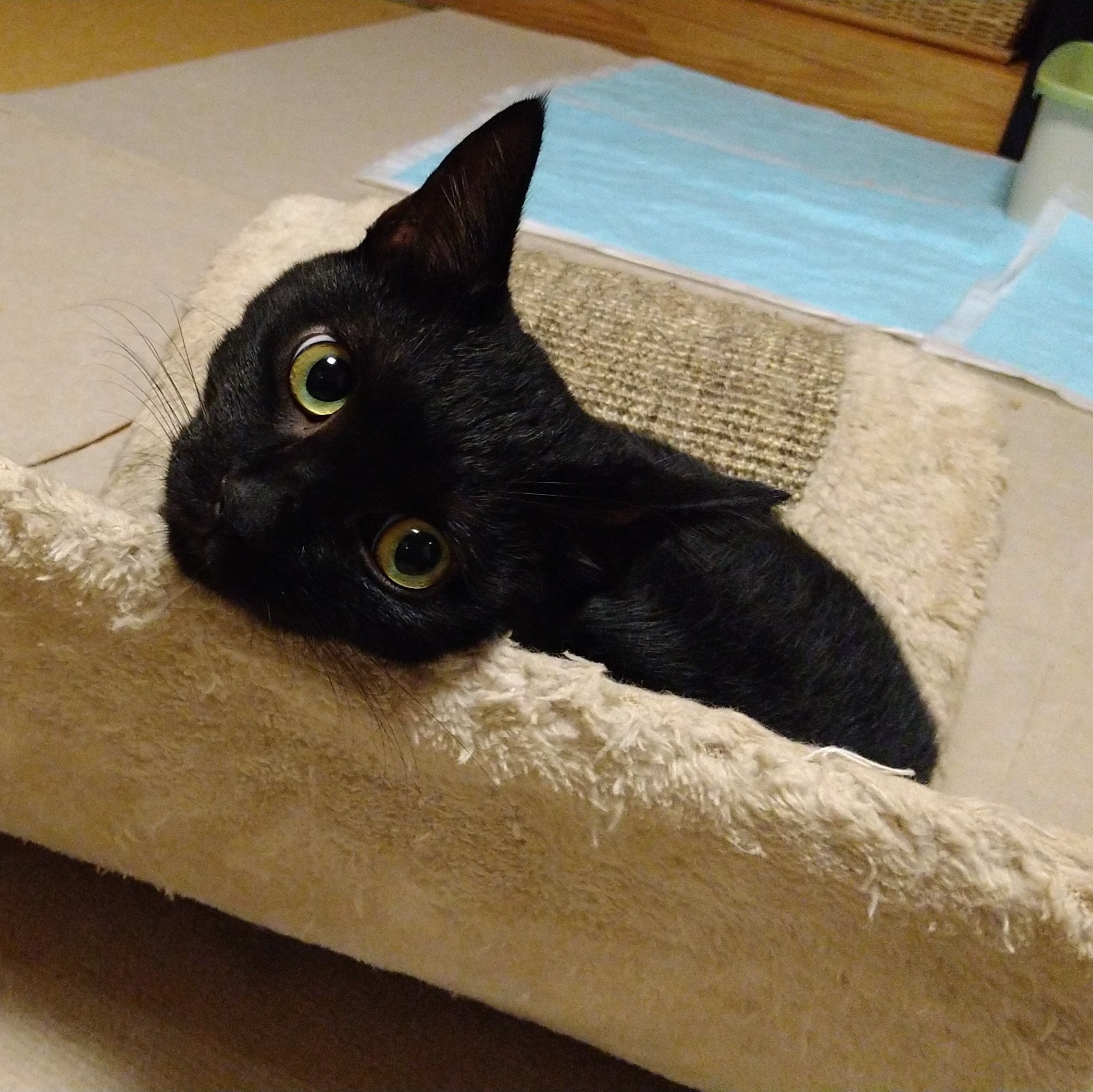 最近のナナメくんは、いつもいたリビングに預かり子猫がいるので、寄り付かなくなりました