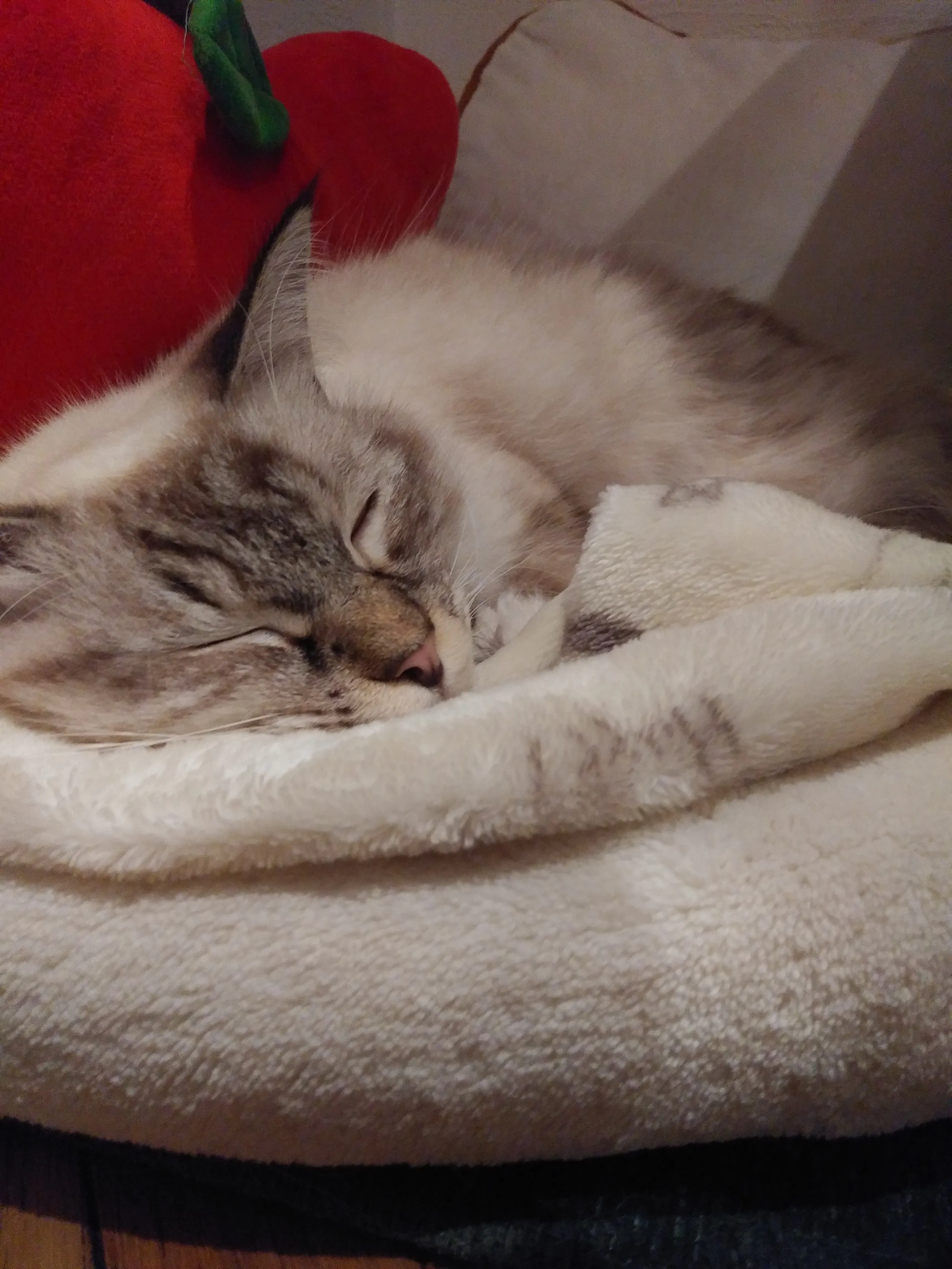 帰宅後は、カリカリを食べて、気持ち良さそうに寝ました。