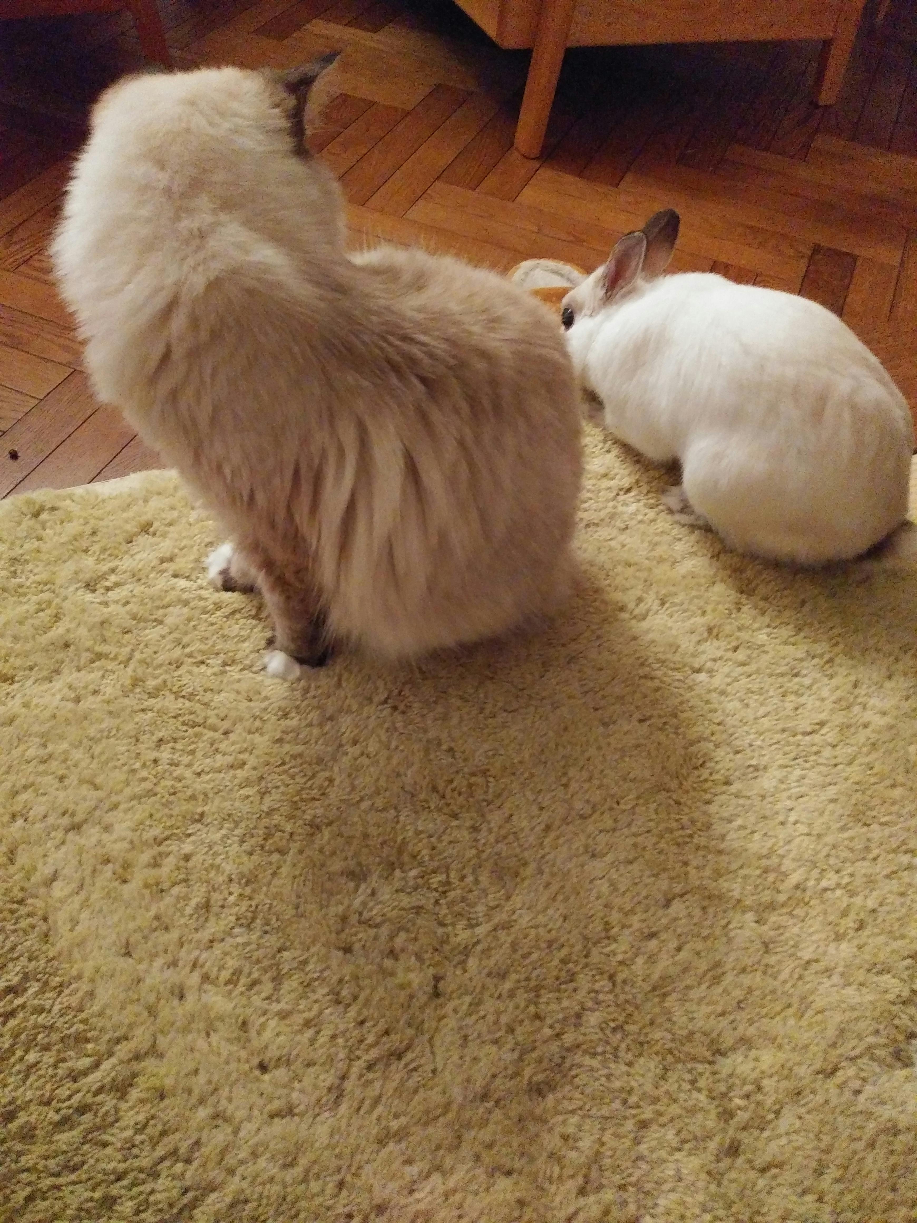猫とウサギが、同居していることに、驚かれた方もおられるのではないかと思います。