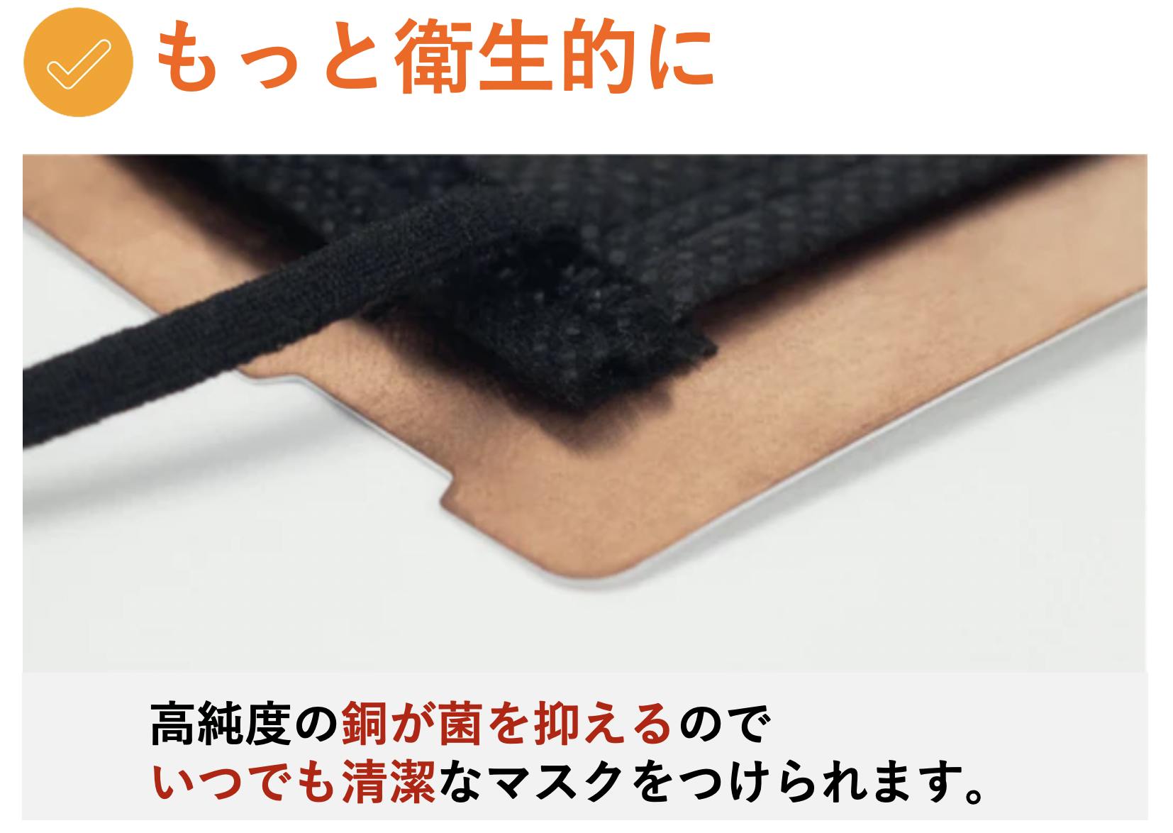 マスクの保管中に高純度の銅が菌の繁殖を抑えてくれるので