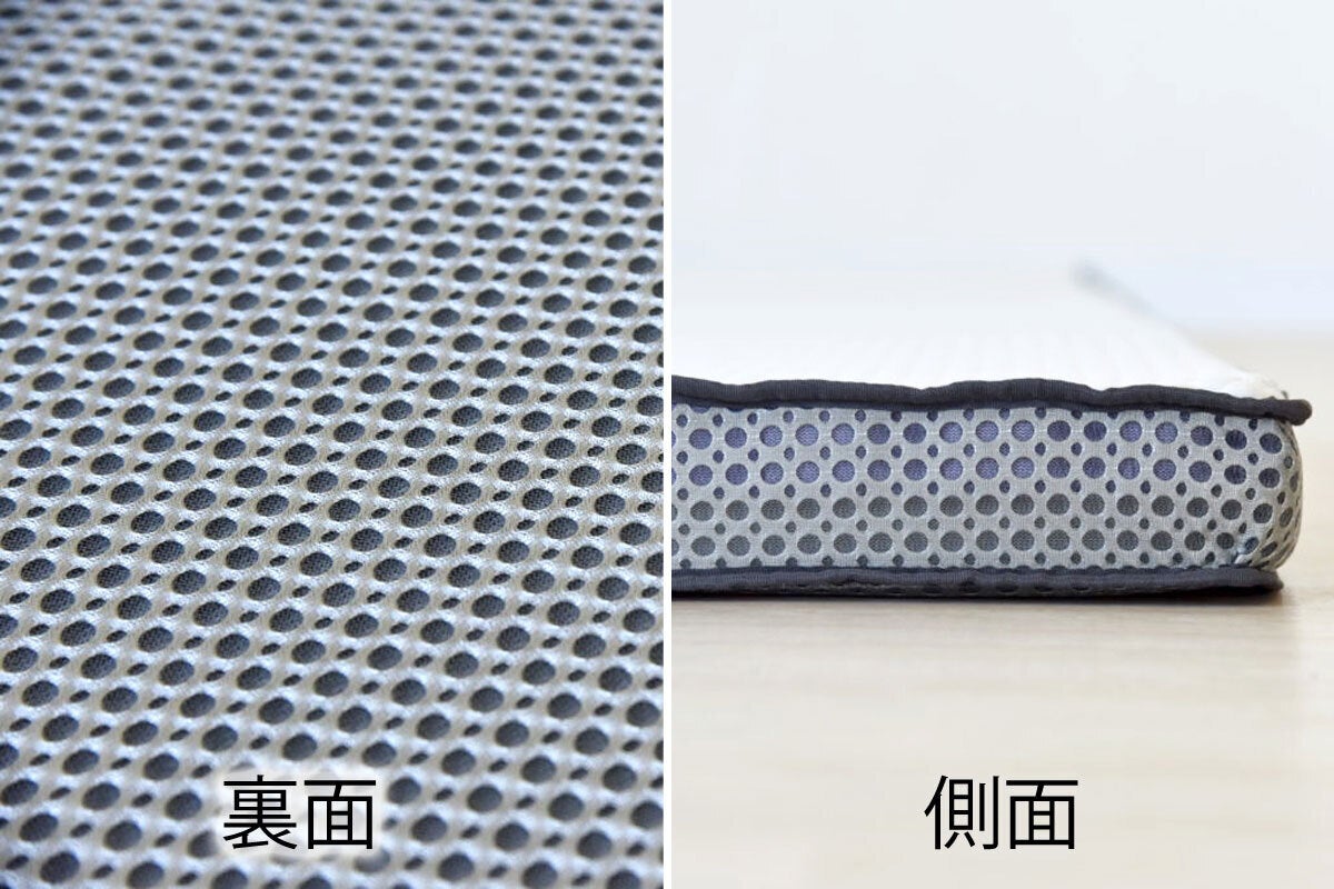 - 格子構造なので通気性が抜群です。カバーの側面も裏側も通気性のよい素材を使っていますので、寝ているときに熱がこもらずに快適さを保ちます。