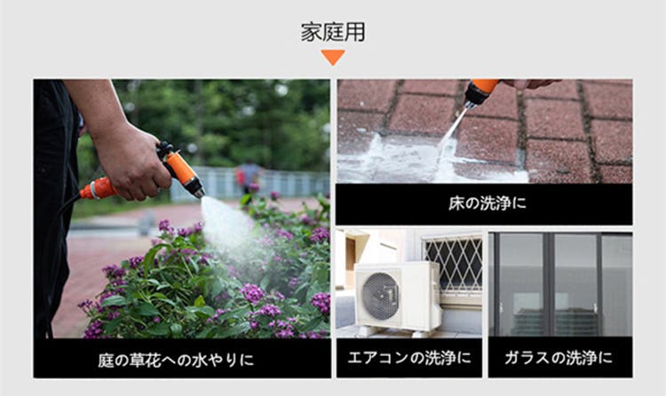 洗車だけでなく、ガーデンの花と菜園の野菜の水撒きとしても使用できます。また、家庭の床と窓などにも使えます。