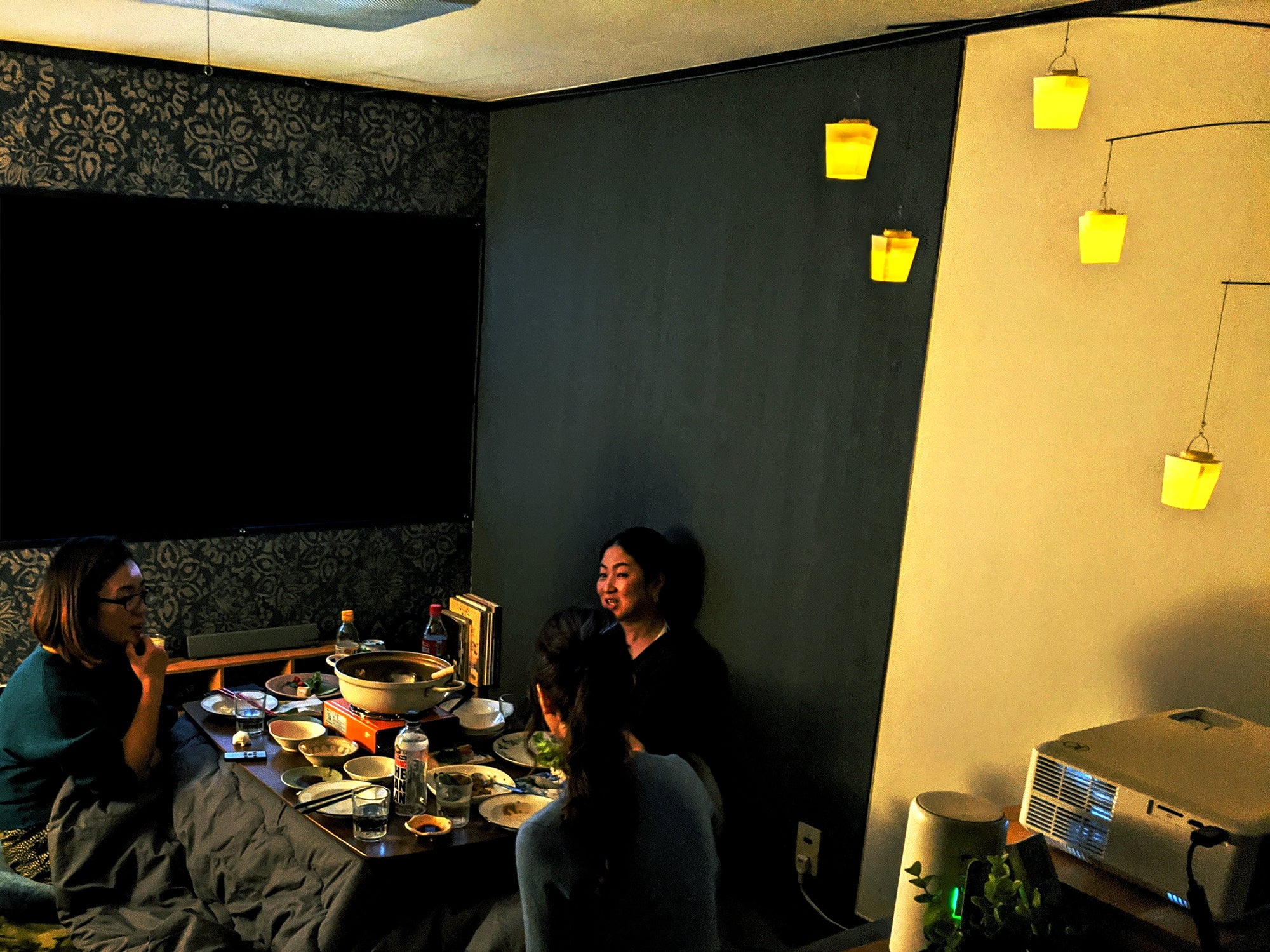 「天灯」にはランタンが7個付いており、それぞれはボタン電池で80時間前後光ります。ONOFFはリモコン操作で行い、光量調整・タイマー設定ができるので、モビールのゆらゆらに癒されながら寝落ち、ということも可能です。