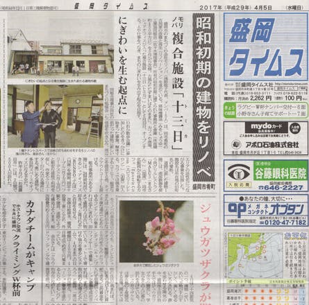 盛岡市で発行されている新聞「盛岡タイムス」の朝刊に「十三日」についての記事を掲載していただきました。
