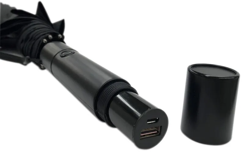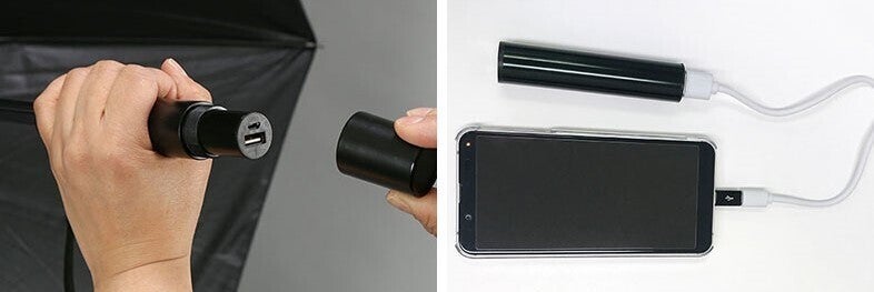 手元(持ち手)のキャップを外すとモバイルバッテリーが登場!