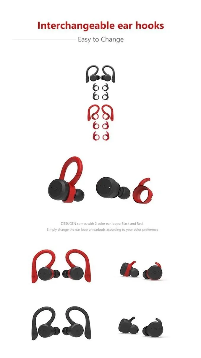 イヤーフック 2組(マットブラック1組、ディープレッド1組)