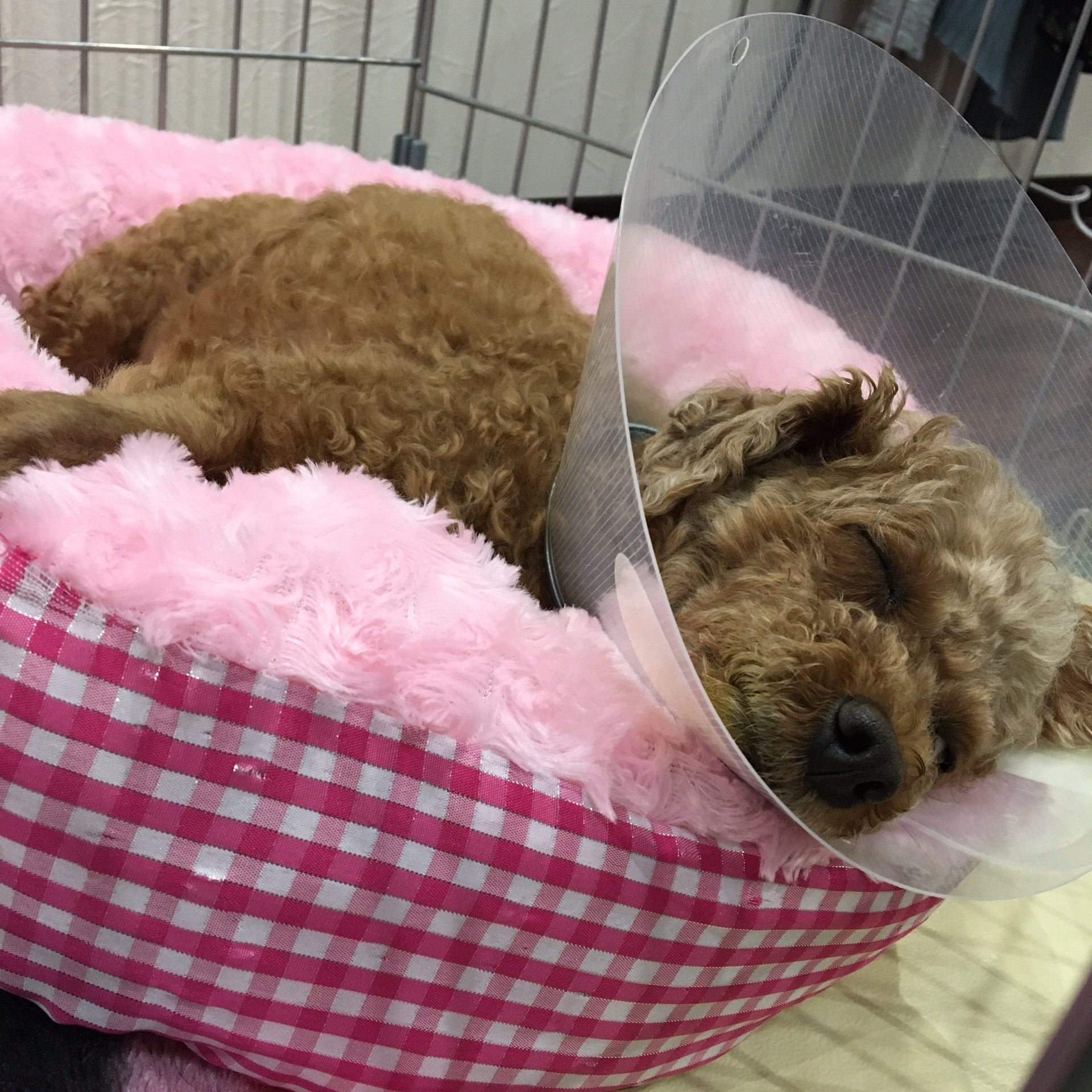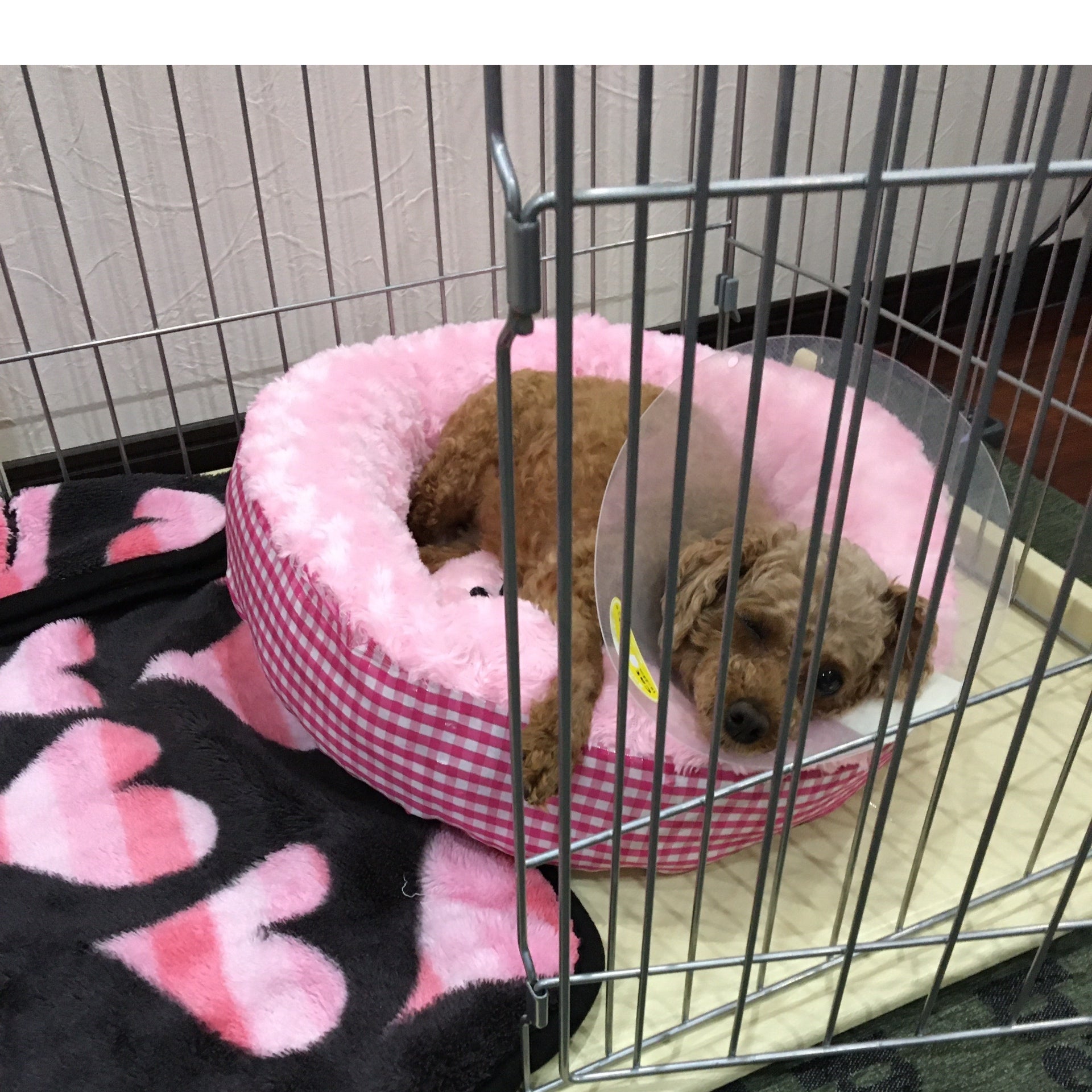 エリザベスカラーをしているので、一緒に布団で寝るのは危ないかなと思っています。今まで部屋の中でフリーにしていたので、いきなりゲージの扉を閉めても「だしてー!」と、興奮すると思うので、今、扉をあけてマンゴーが入りたくなるようなベッドを置いて慣れてもらっています!