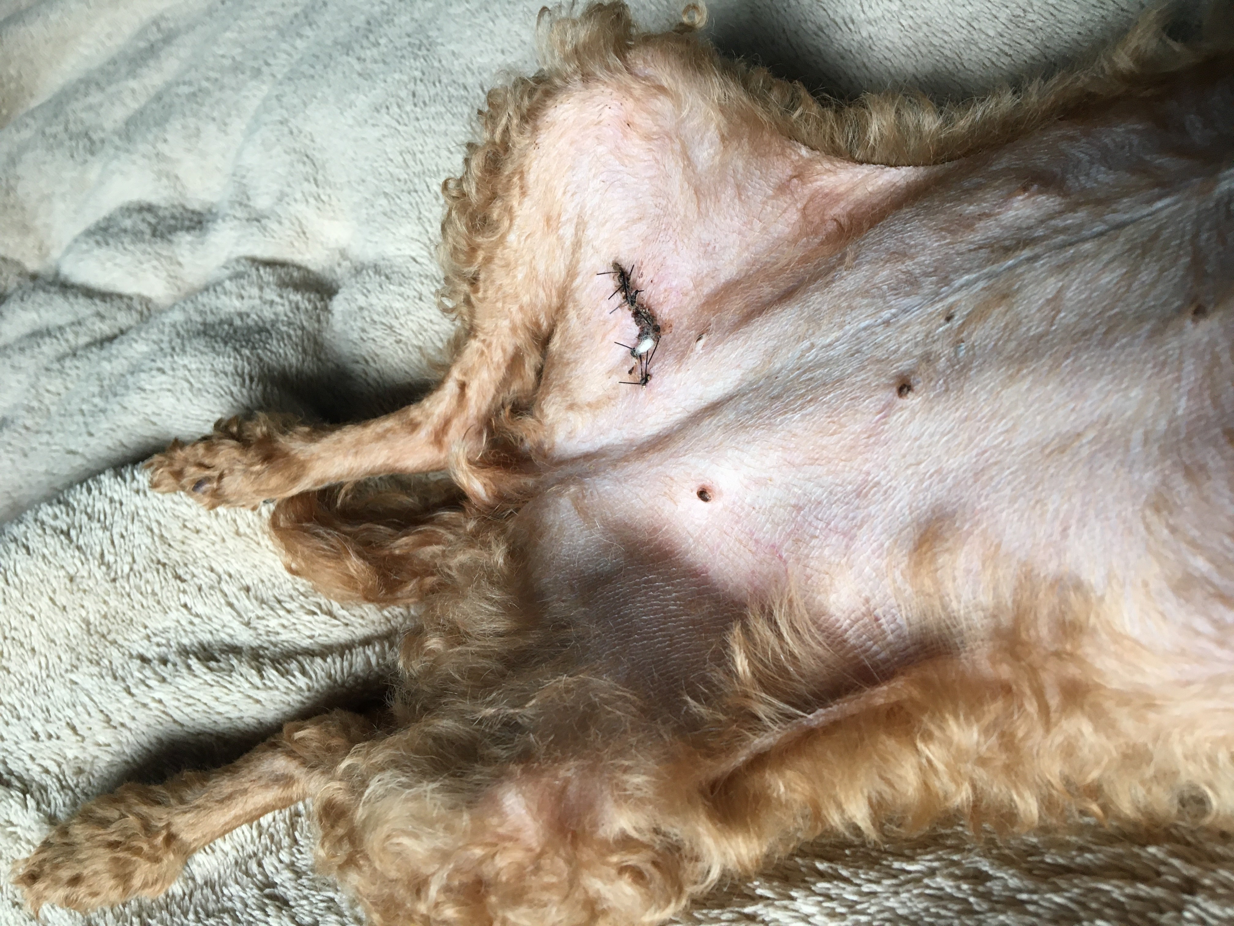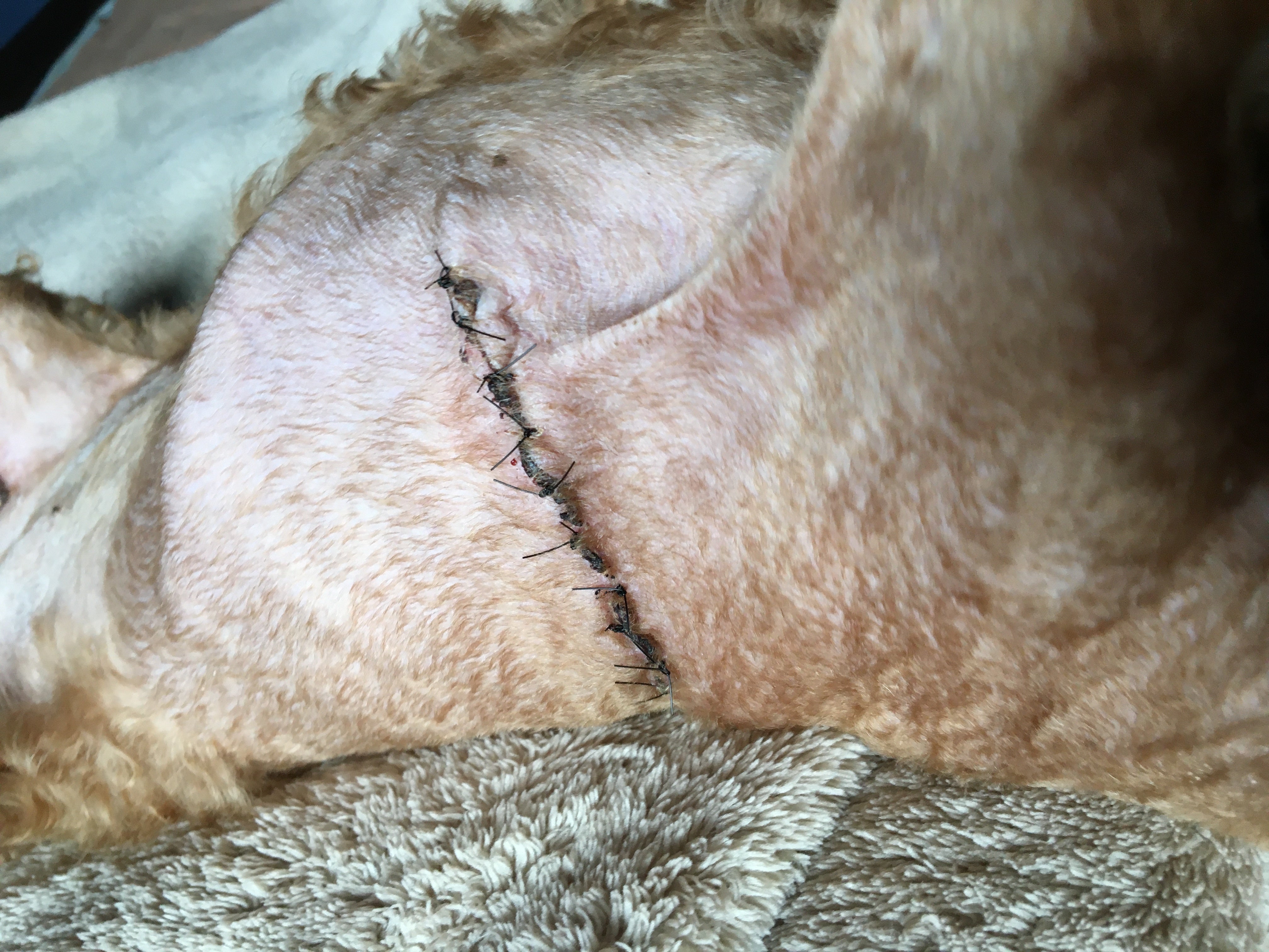 傷口を舐めなければいいので、私がずっと見ておける時にはエリザベスカラーを外してあげています。クラウドファンディングのコメントで、エリザベスカラーはストレスになる子もいるので、エリザベスウェアーを勧めていただいたのですが、マンゴーは、内腿のところにも傷がある為、エリザベスウェアーでは隠れそうになくて、使えないんです( ; ; )