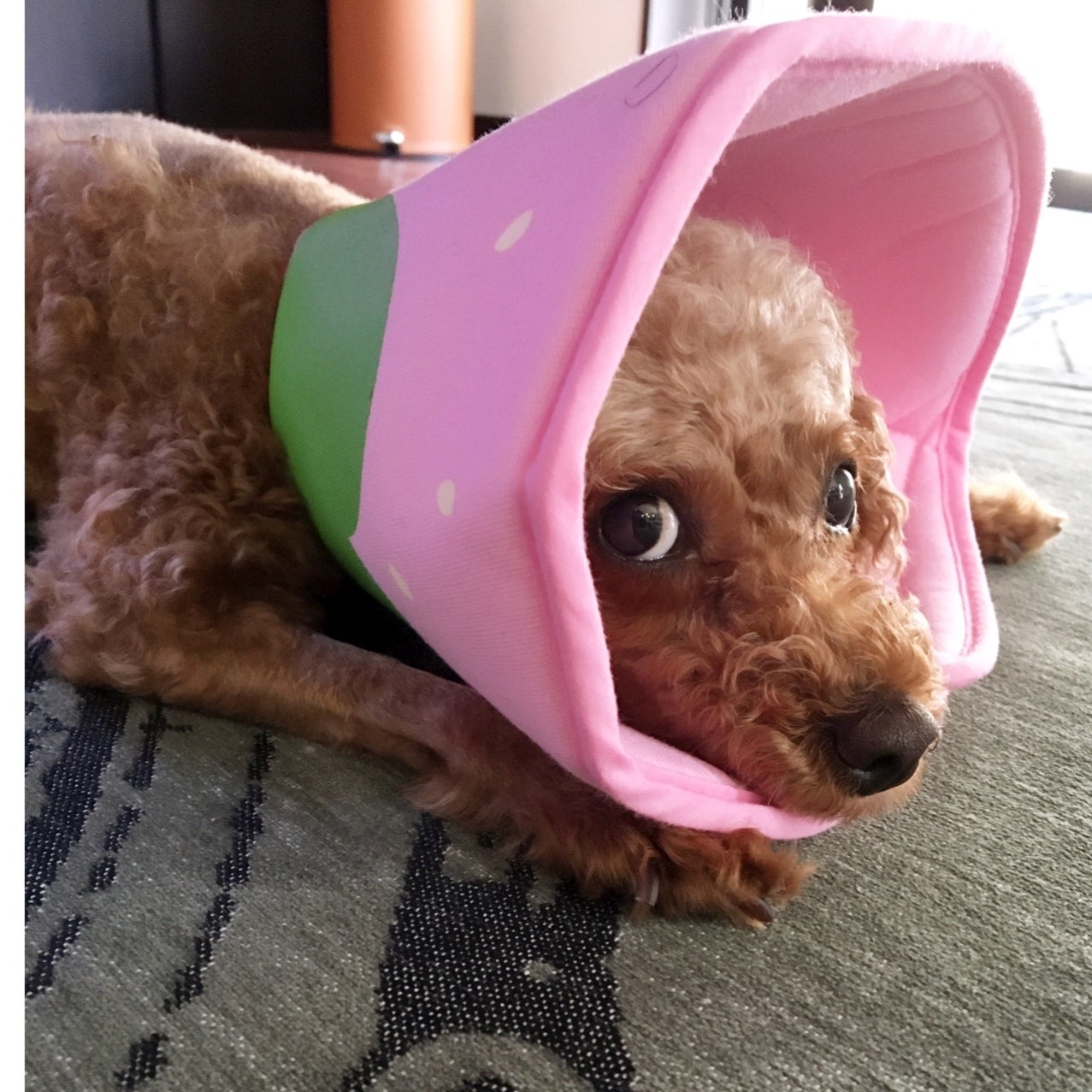 柔らかいエリザベスカラーを購入してから、結構気に入っているようで、つけるときも尻尾を振って寄ってきていました(^^)