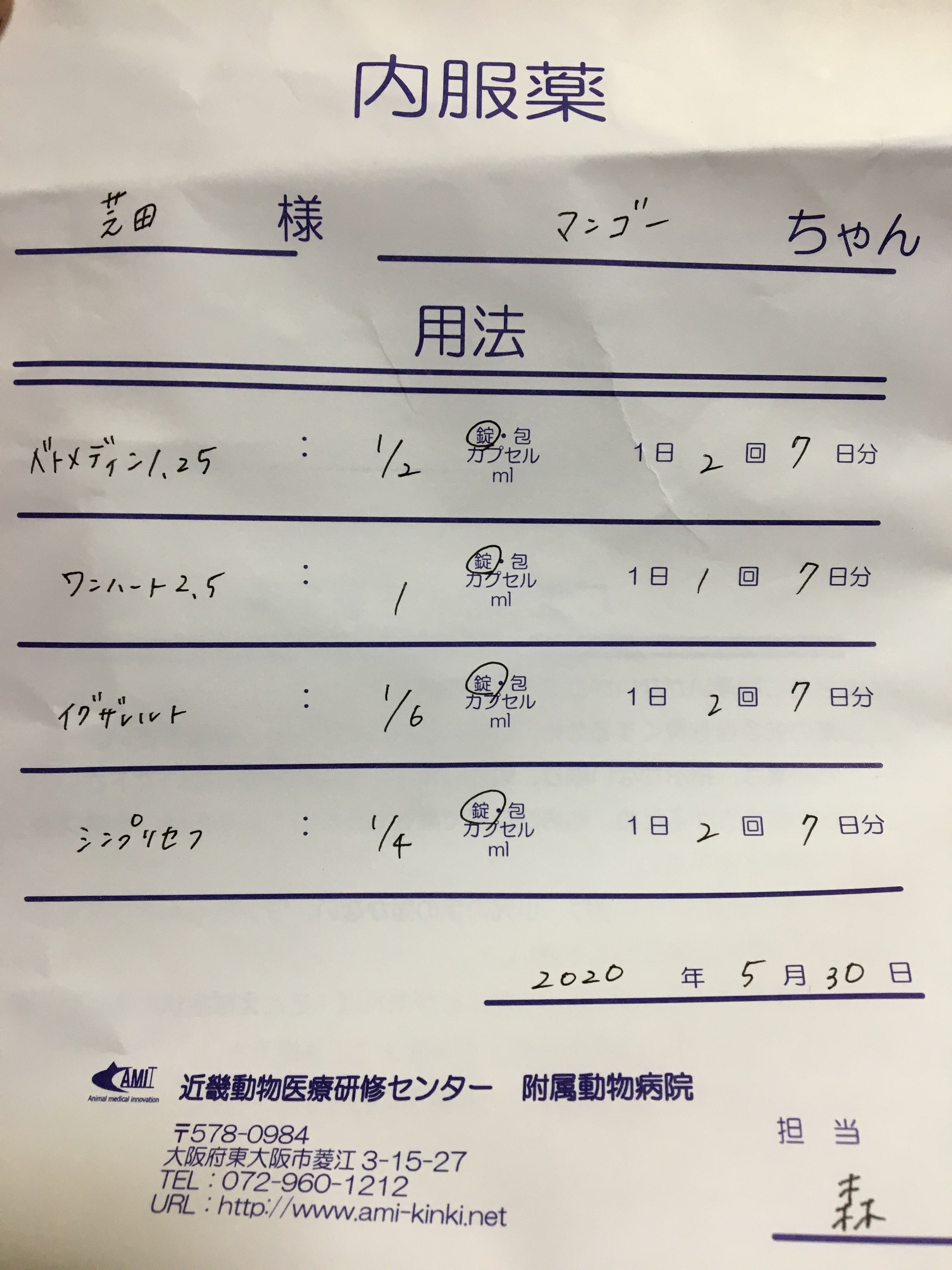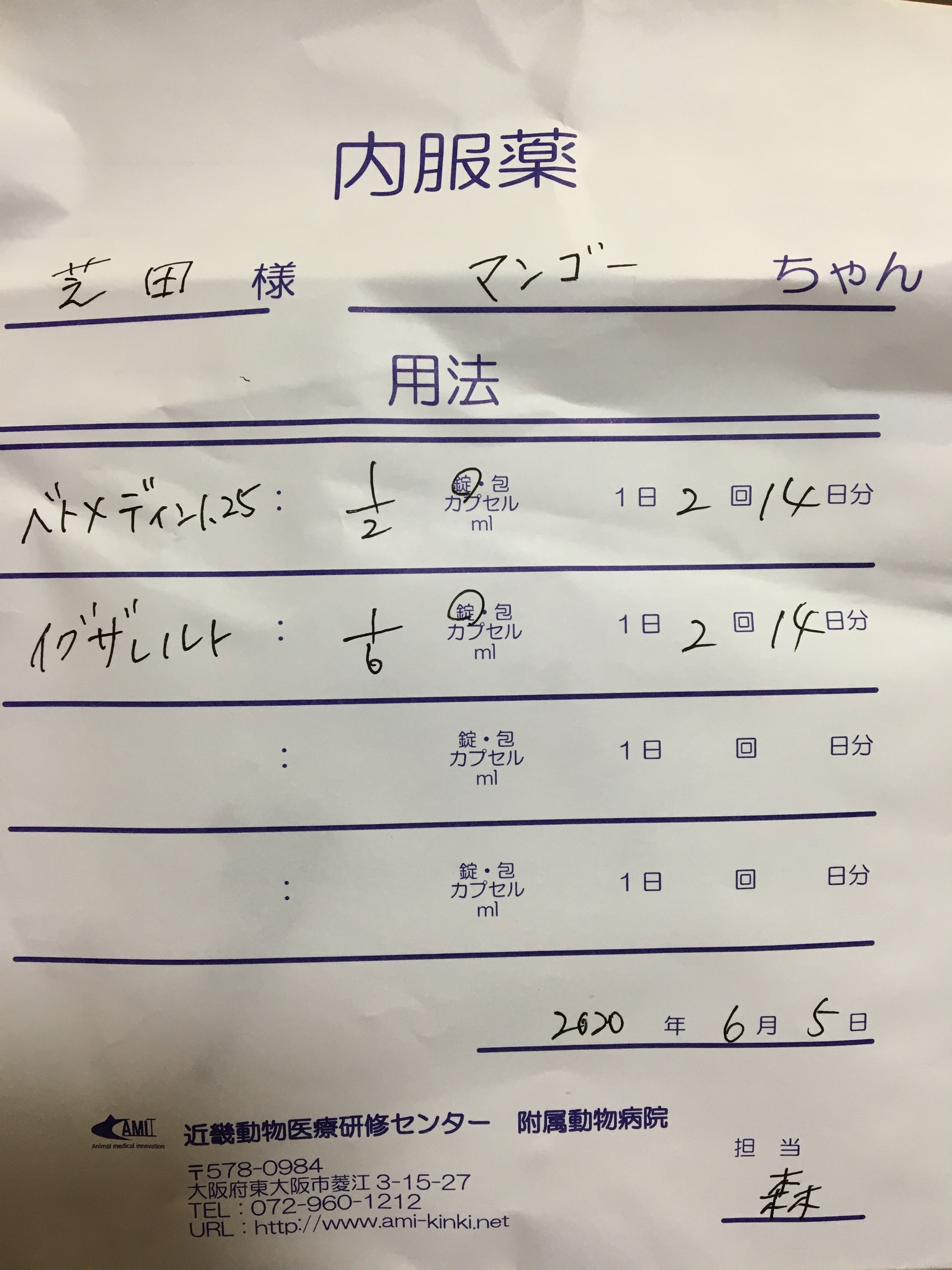2週間後に検診に行って問題なければ、また強心剤もなくなります!!