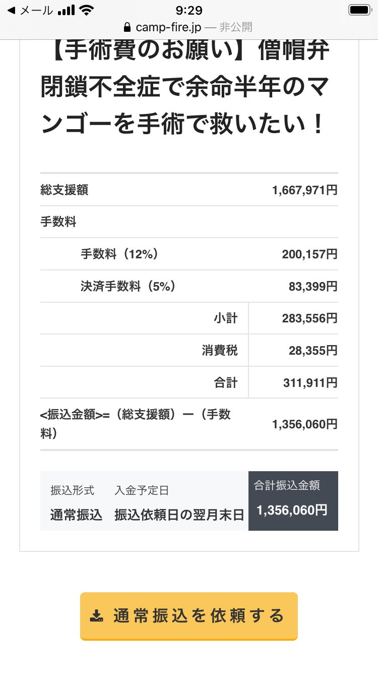 1356060円すべて、マンゴーの治療費にあてさせていただきます。
