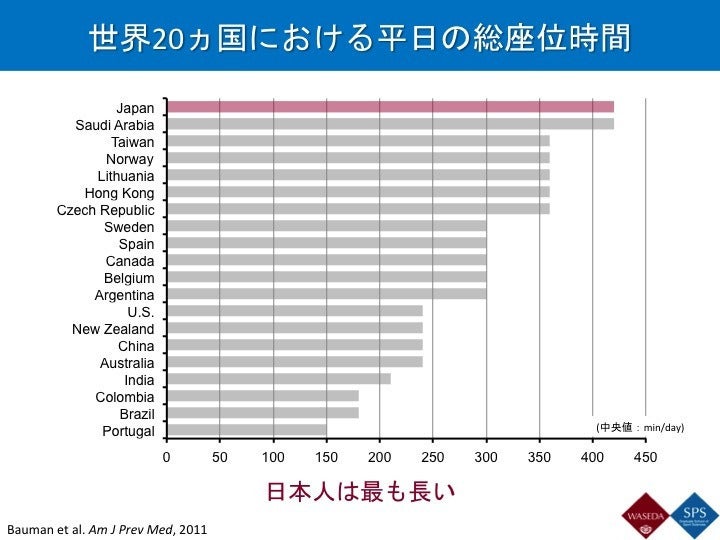 日本人は20カ国中でもっとも長い時間座っているようです。