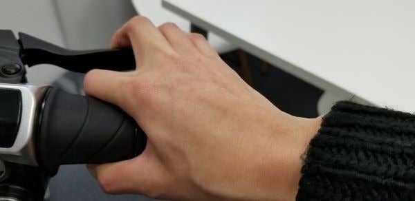 左の手元等に付いていて、指でレバーを下げる事の多い電気ブレーキはそれほど速度の出ていない場合はそれほど気になりませんが、ある程度スピードが出ると車体が完全停止するまで多少タイムラグが生まれる為不安になる場合があります。