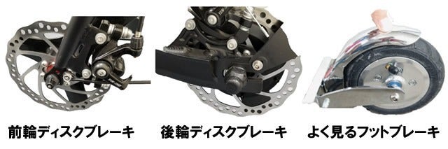 全天候対応!前後ディスクブレーキ!を採用しています。