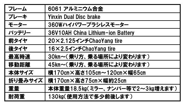 前輪20×2.125インチ(ChaoYang tire)・後輪16×2.5インチ(ChaoYang tire)