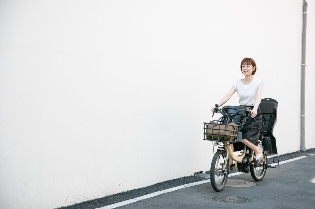 プライベートでは2児の母として、自転車に乗って毎日活動しています。