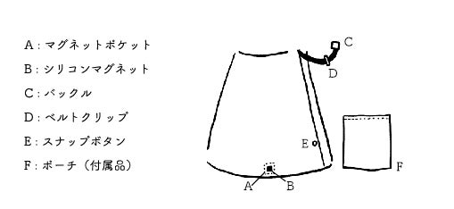 ・より確実に裾を留めたい場合は、マグネットポケットの下部にあるボタンと留めゴムをご使用ください。Maquiskaよりも長い丈のスカートを下に着用する場合も、安全のため必ずボタンと留めゴムをご使用ください。