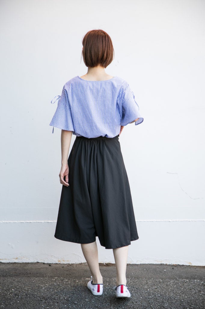 後ろから見ると、キュロットやガウチョパンツのようなシルエットになります。