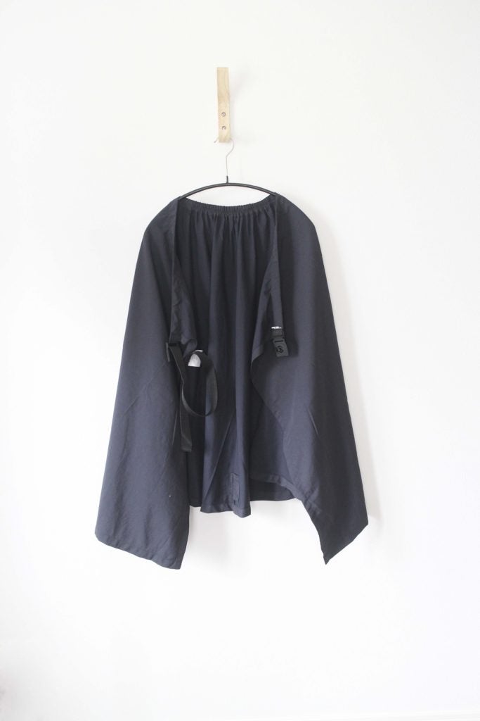 軽い雨の日には、Maquiskaを取ったあと、さっと羽織ってポンチョ風にも使用できます。