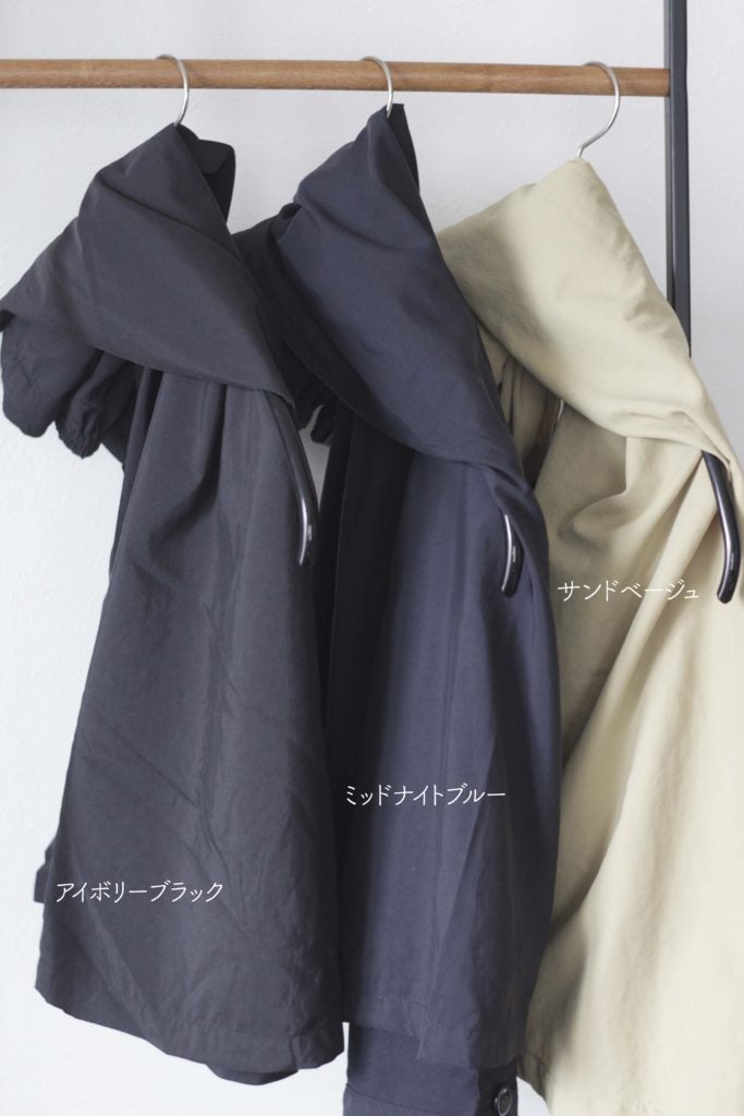 - ・撥水加工は永久的ではありません。クリーニングや水洗いで徐々に取れます。加工が取れた際は、クリーニング店などでの再加工をするか、乾燥後撥水剤をスプレーし、中温にてアイロン仕上げをしてください。
