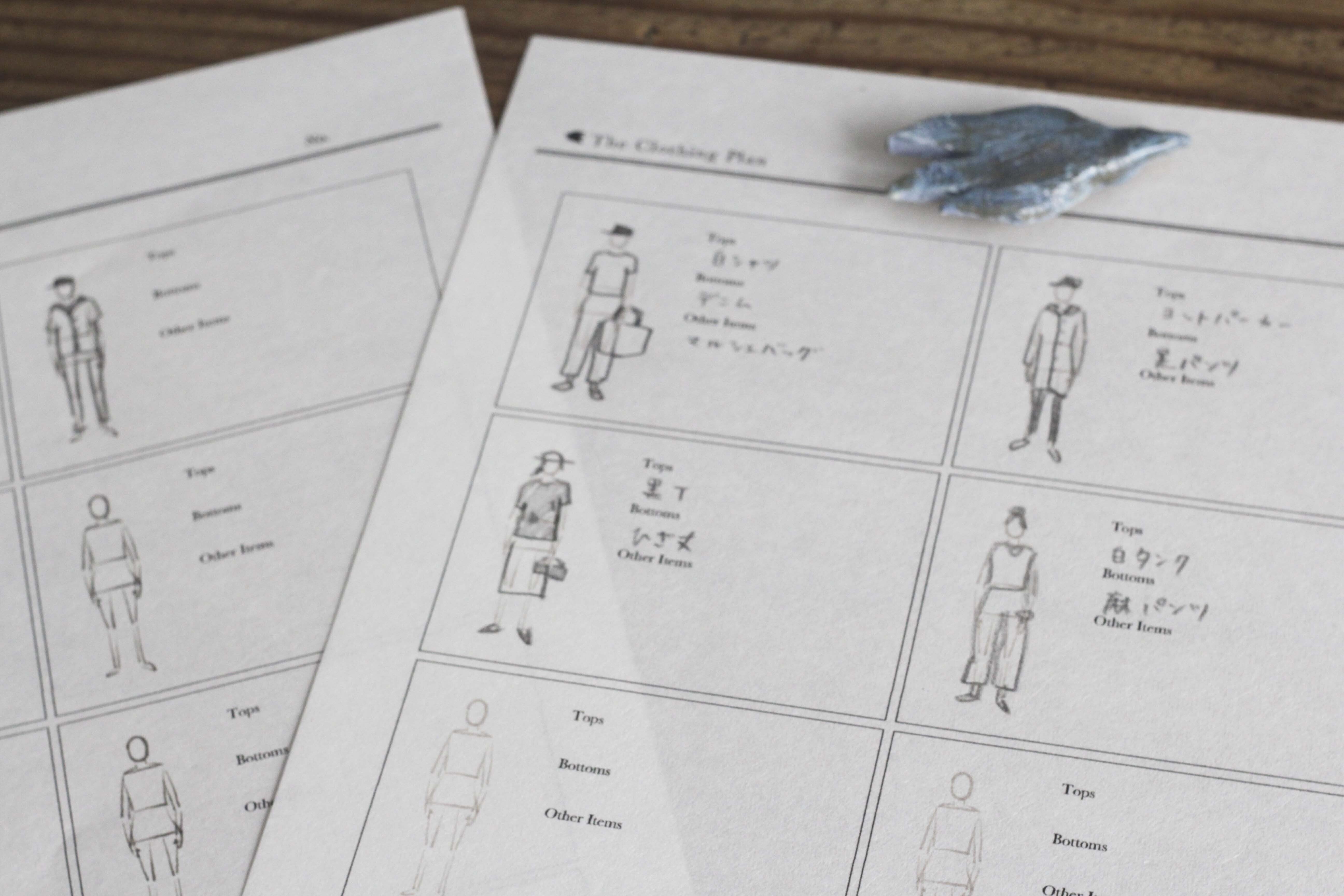 ・洋服のコーデをメモするワードローブシート