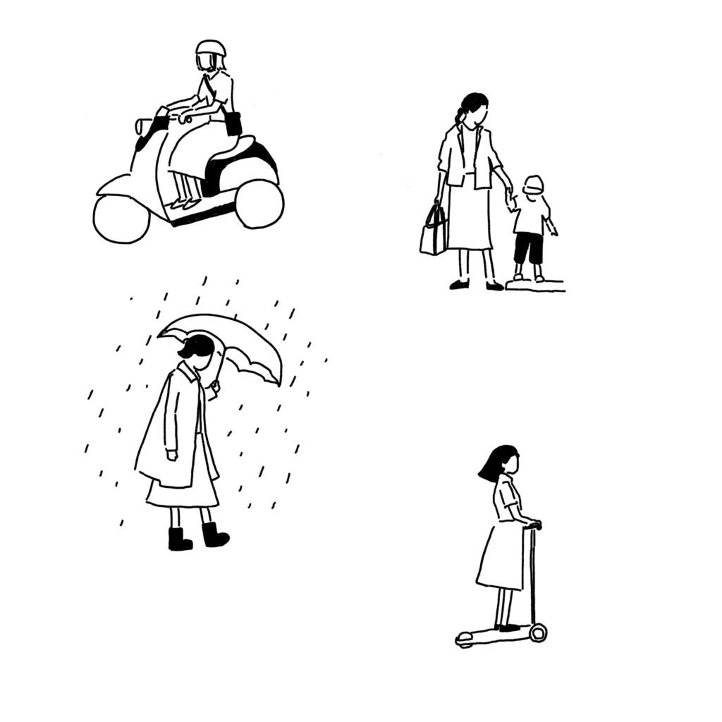 - ・自転車で雨が降るとスカートがぬれて困る。