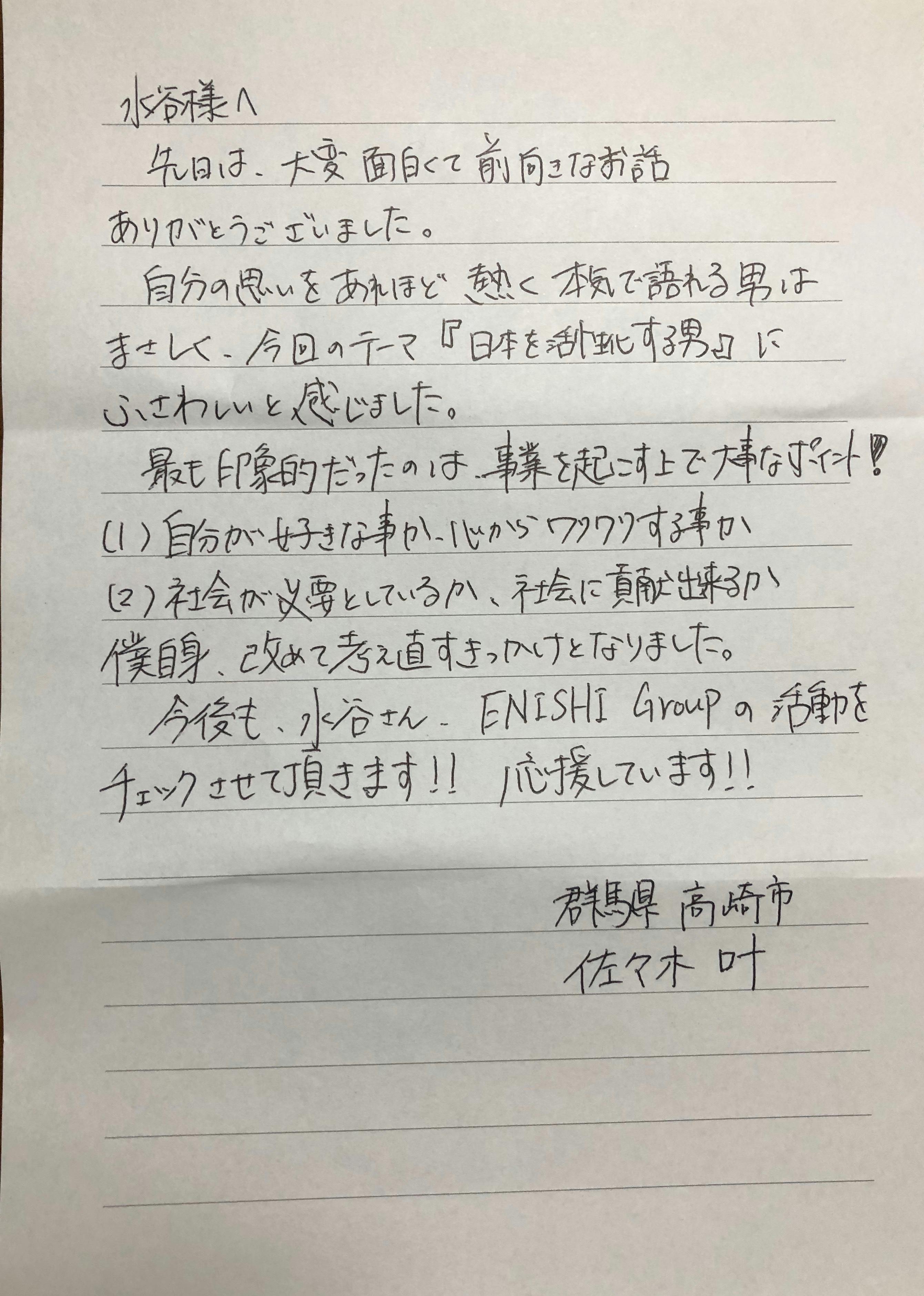初めまして。 ENISHI Group 代表 水谷 宣仁 / Nobuhito Mizutani です。