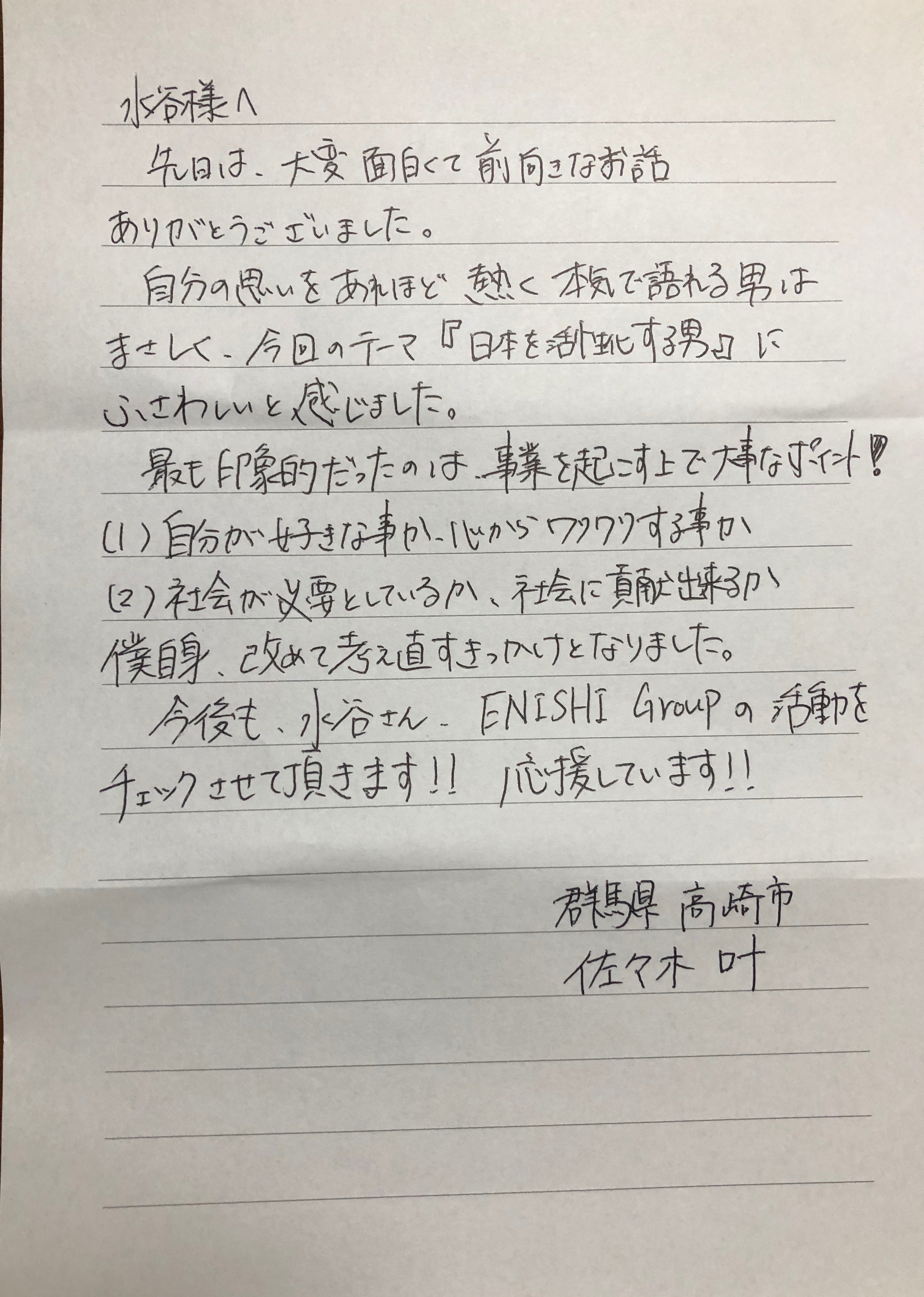 初めまして。 ENISHI Group 代表 水谷 宣仁 / Nobuhito Mizutani です。