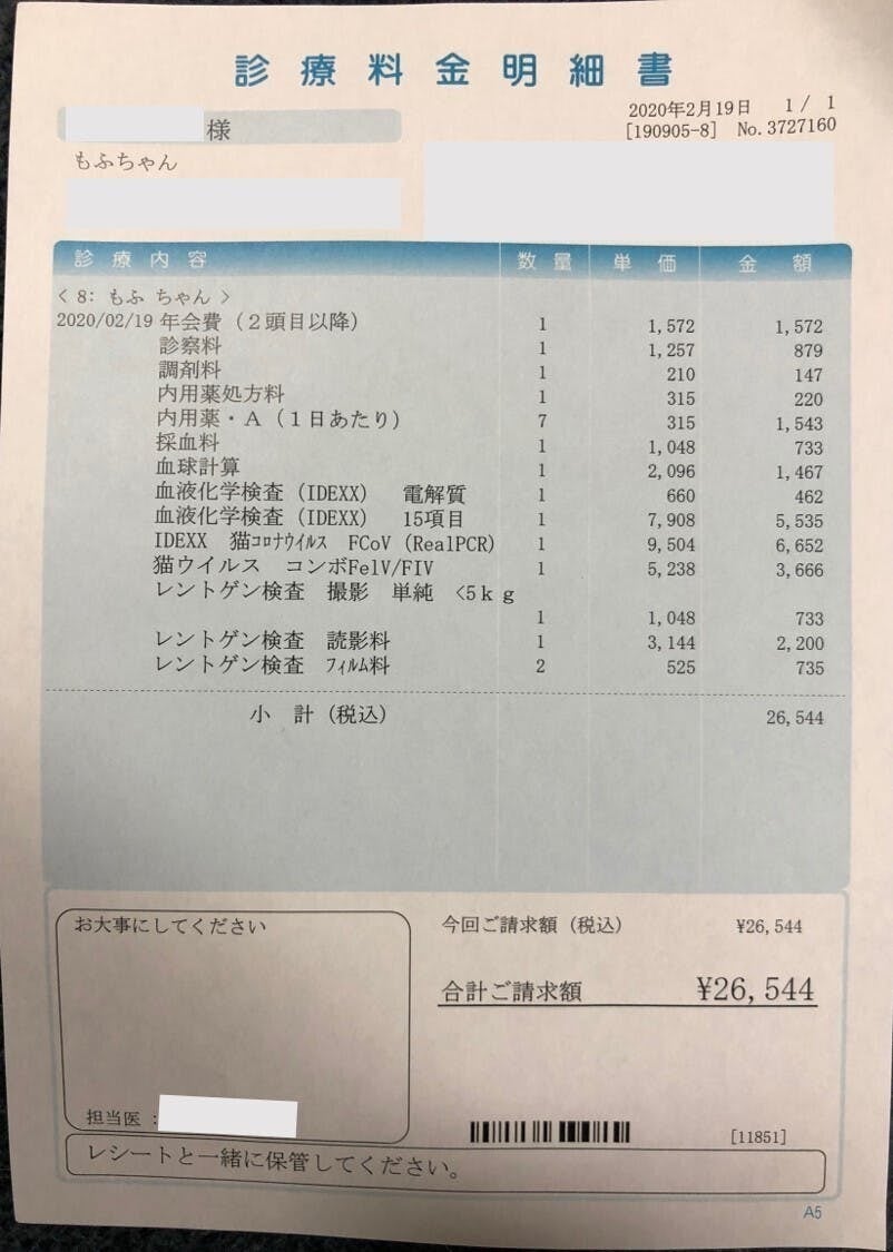 実はもふくんを迎える少し前、生まれ持った慢性腎臓病の猫ちゃんの治療で夜間救急病院や入院代等で70万円ほどかかりました、残念ながら結果は報われませんでした。その後かわいいかわいい新しい家族、もふくんとの出会った矢先にFIPの発症となり困惑しております。
