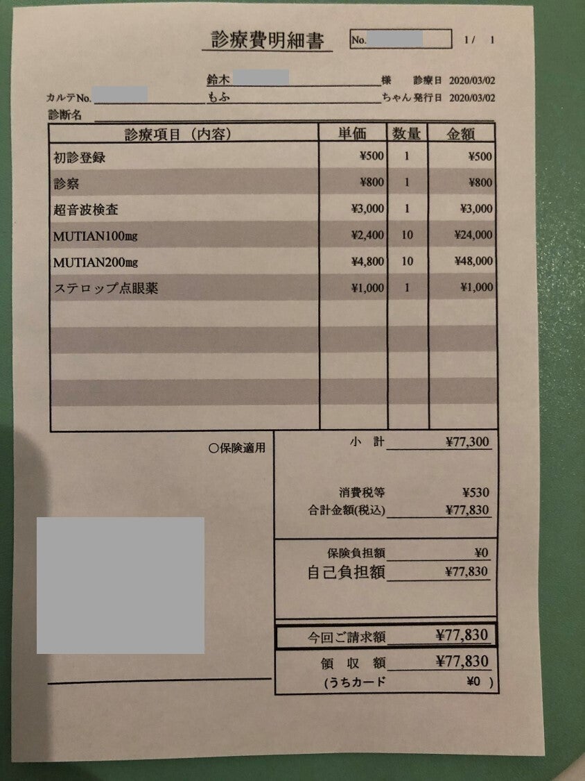 交通費4000円、診察としてエコーや血液検査などの診察、薬を完治まで計算すると90万~100万円程度かかるとみております