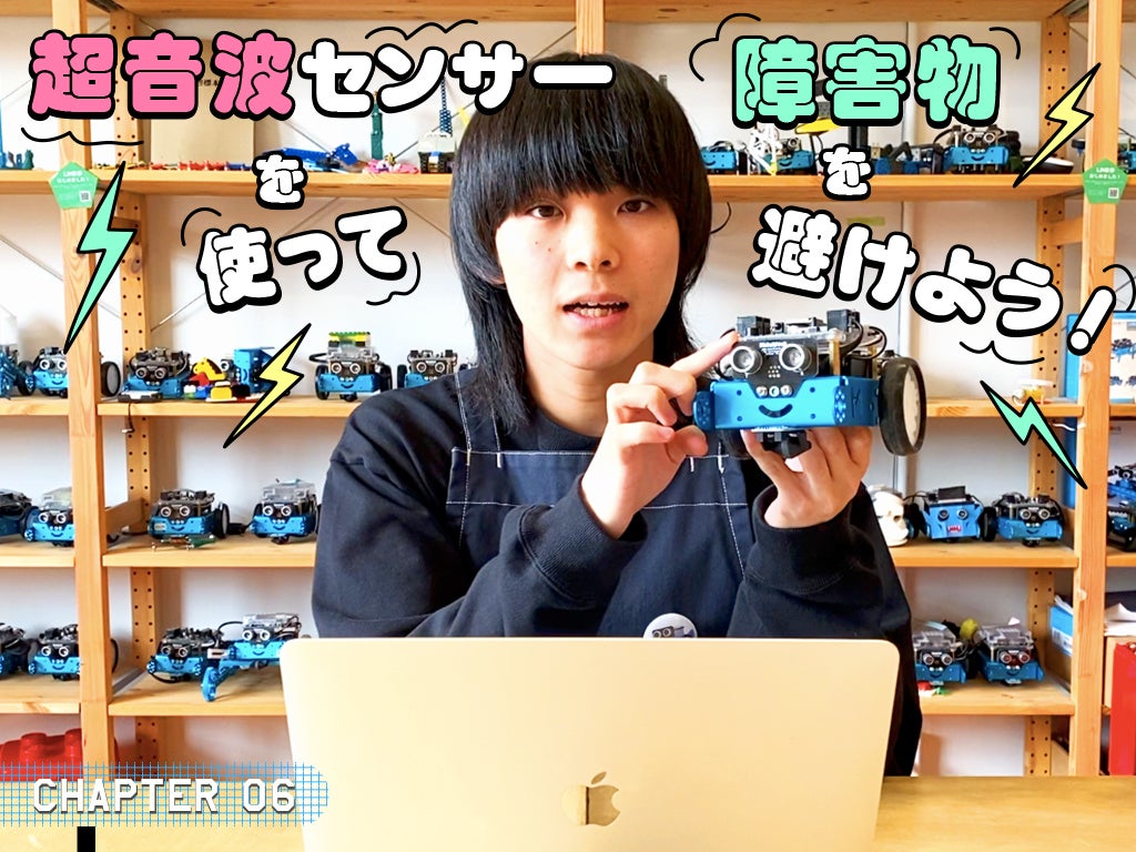 超音波センサーを使って、自動ブレーキで障害物を回避するmBotにしてみよう。