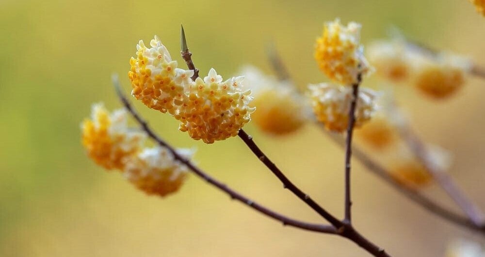 さてこの御朱印帳袋は「ミツマタ」と呼ばれる兵庫県の播磨と但馬に広く自生する植物を素材とした和紙にて作られております。実はこのミツマタで作られる和紙は私達日本人にとって非常に身近なもので、日本紙幣にも用いられる大変丈夫な素材でございます。