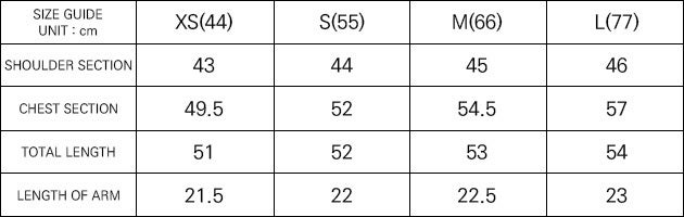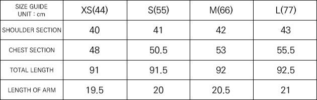 ・サイズ:XS (44) / S (55) / M (66) / L (77)