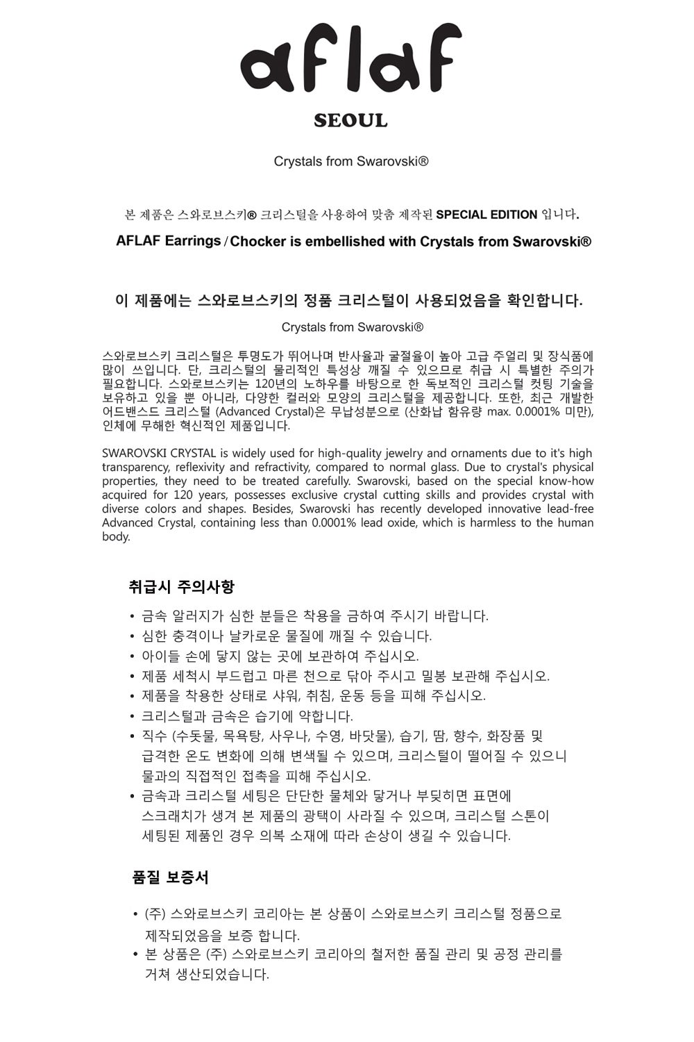 * AFLAF 株式会社のアフターサービスセンターは現在韓国にしかございません。そのため、アフターサービスを希望する場合は韓国に製品を送っていただく必要があります。予めご了承くださいませ。