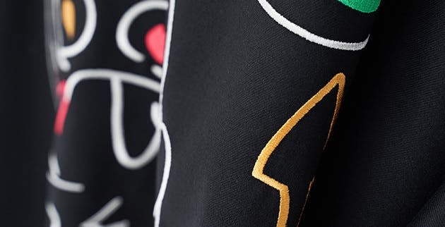 アプリケ(appliqué)は、2つ以上の異なる素材を繋げるという意味をもつファッション用語です。Tシャツとワンピースには100%ウールの刺繍が背面に大きく入っているのが特徴です。デビル・ラビットの刺繍は、自分の個性をしっかりと表現したい人達におすすめです。どこにいても周りから注目を集める素敵なファッショニスタになれます。