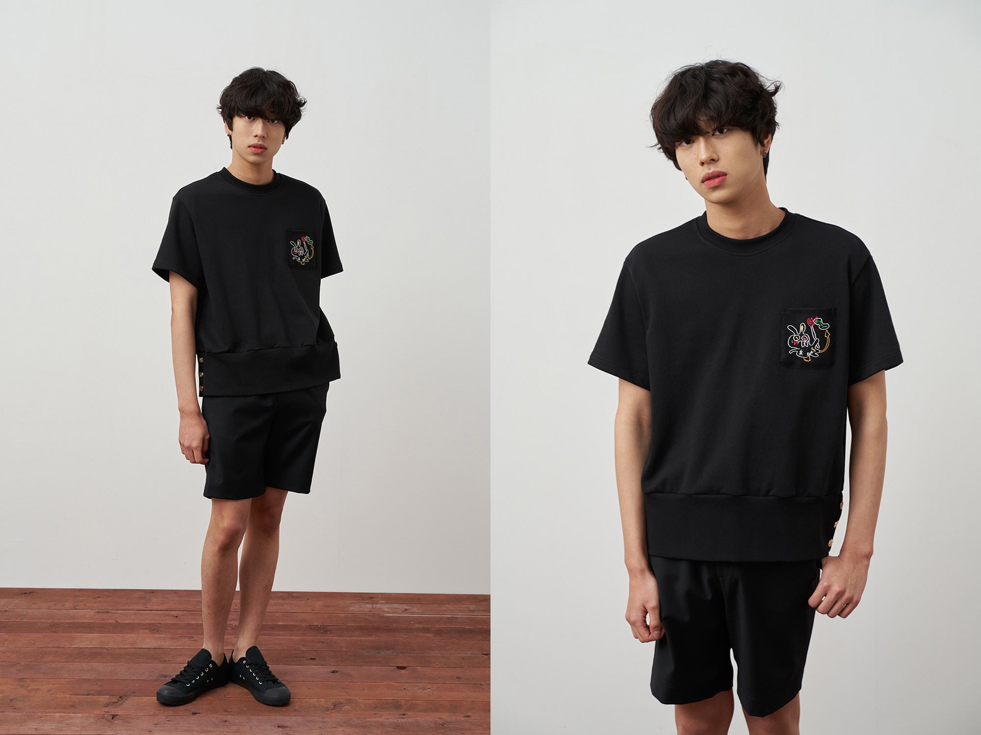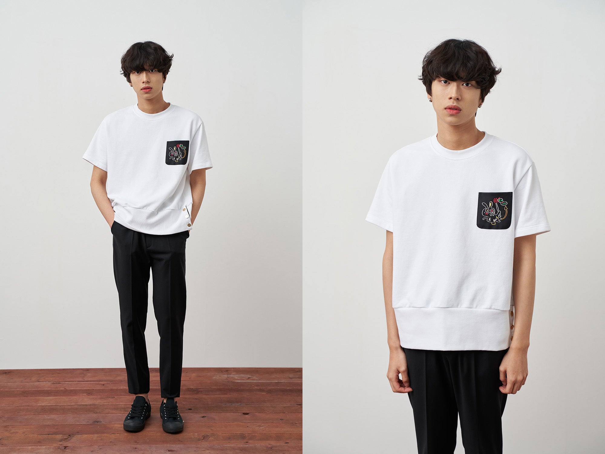 ▲ COLOR : BLACK、WHITE(180cm / 63kg / モデル着用サイズ : M(100))