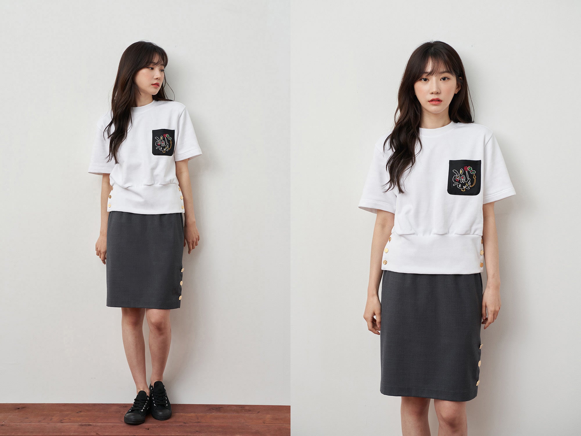 ▲ COLOR : BLACK、WHITE(165cm / 45kg / モデル着用サイズ : XS(44))