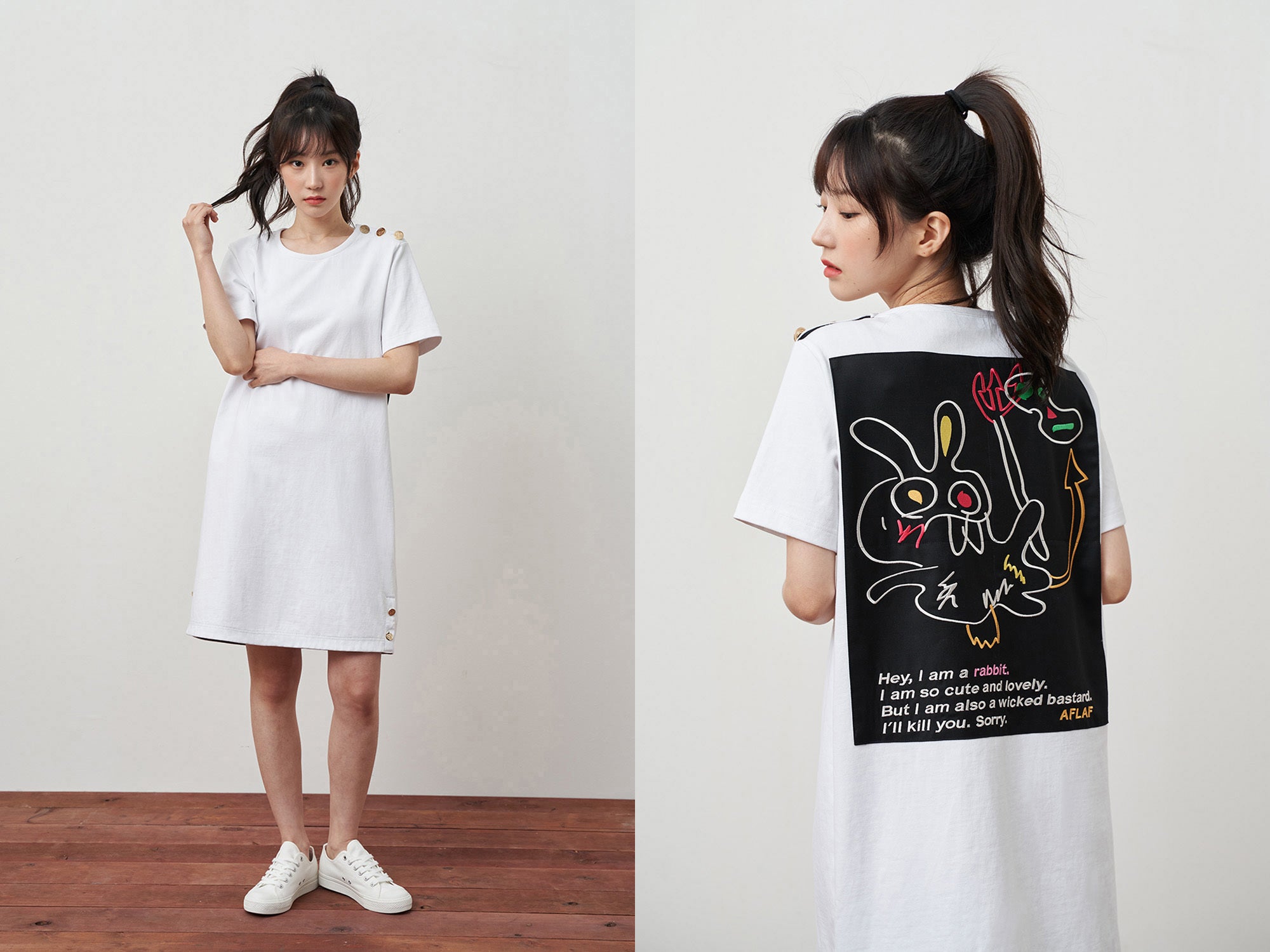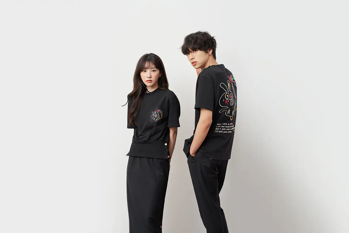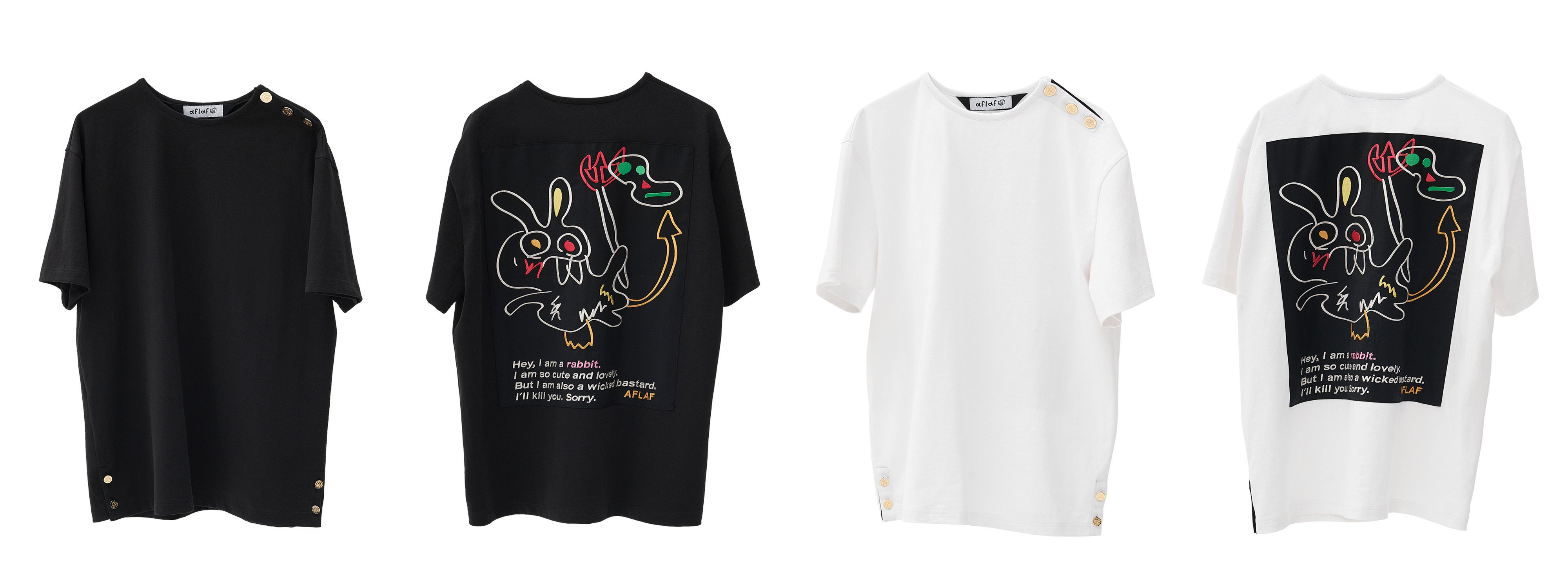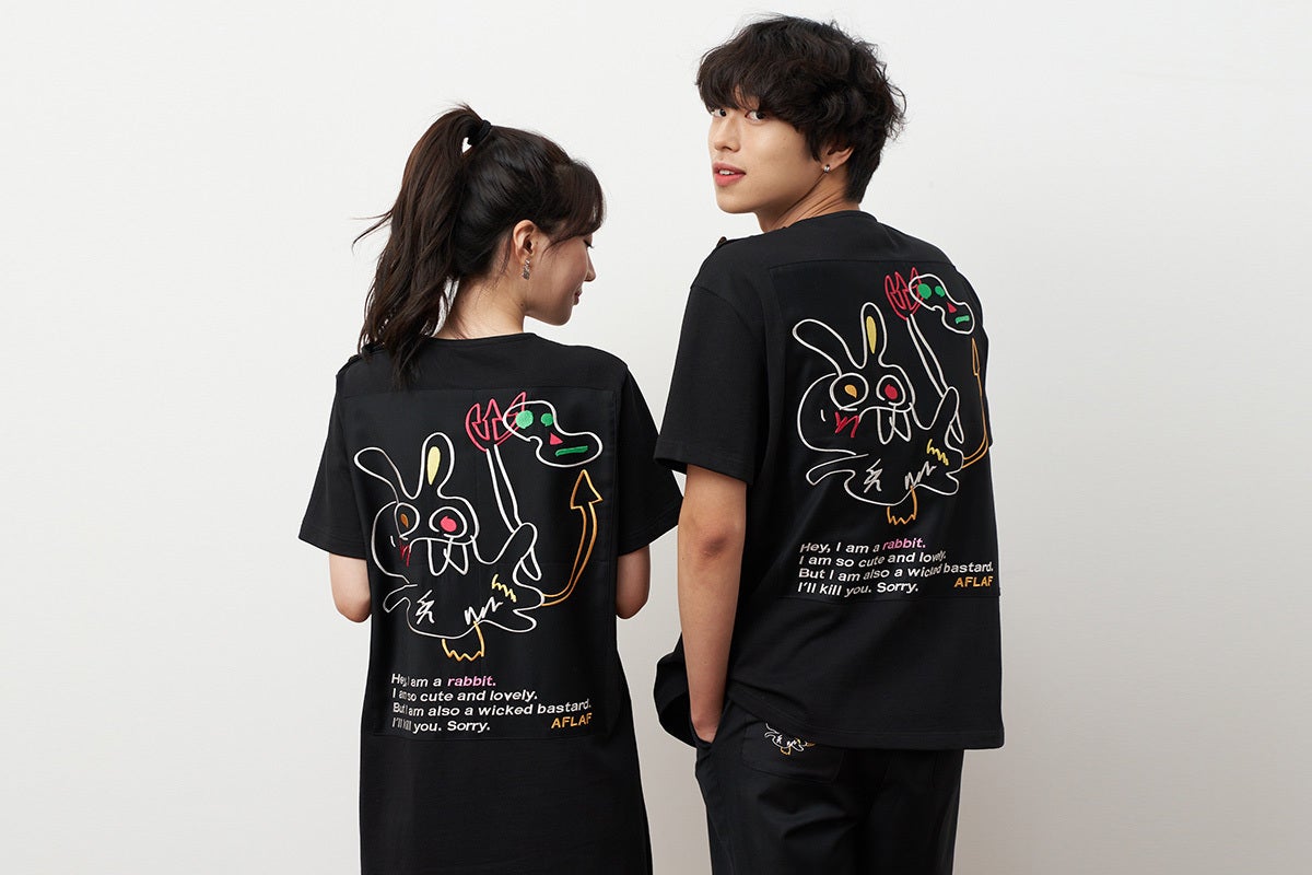 「AFLAF」のすべての製品にはこのデビル・ラビットの精神が含まれています。黄金のボタン、裏地、刺繍、プリントなどでデビル・ラビットは「私たちは、決して弱くない」、「私たちはみんなは大切な存在だ」というブランド価値とメッセージを伝えているのです。