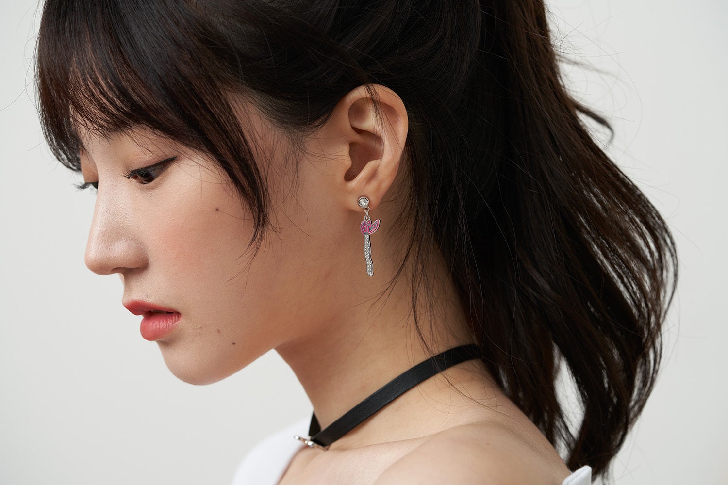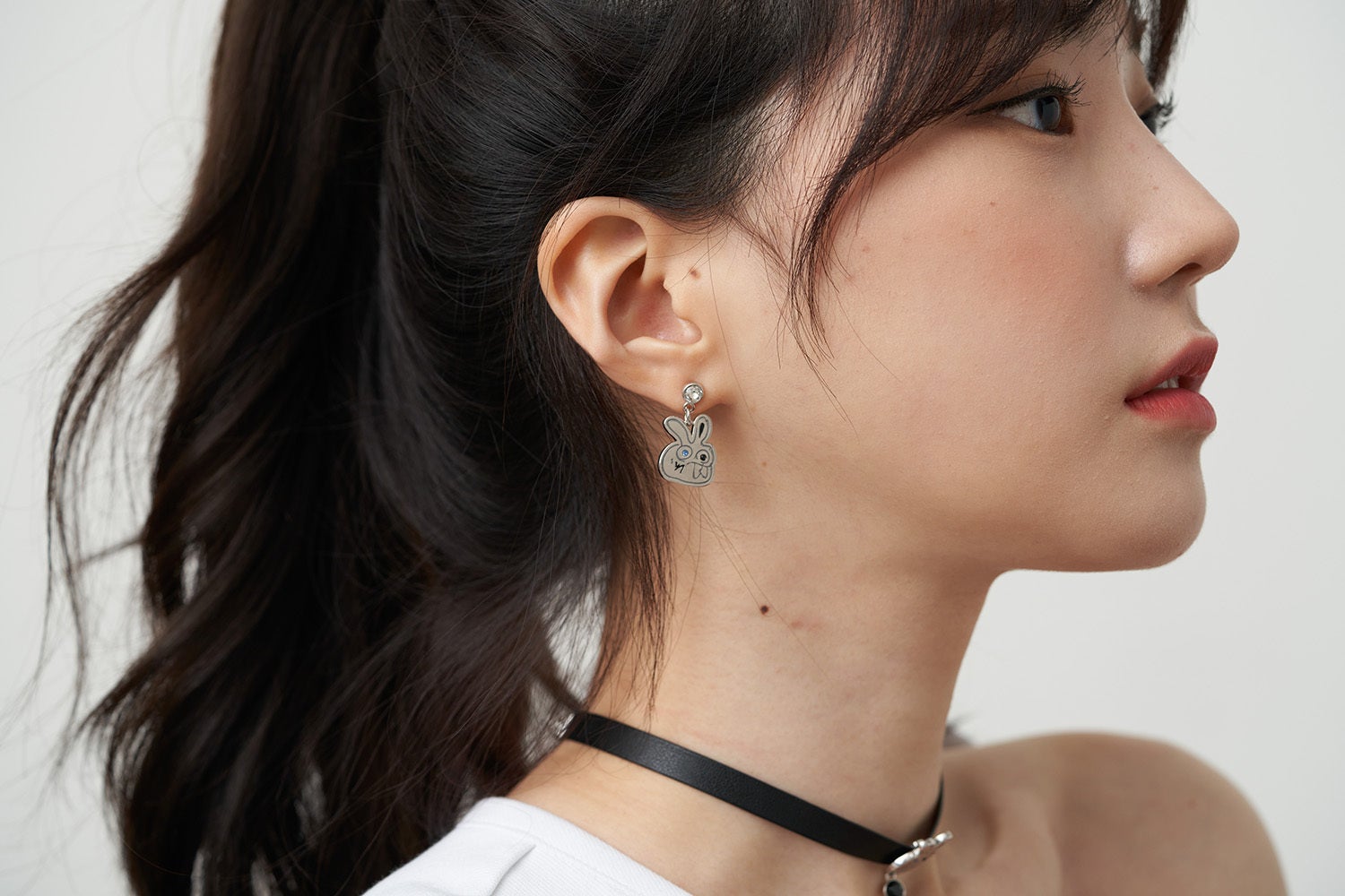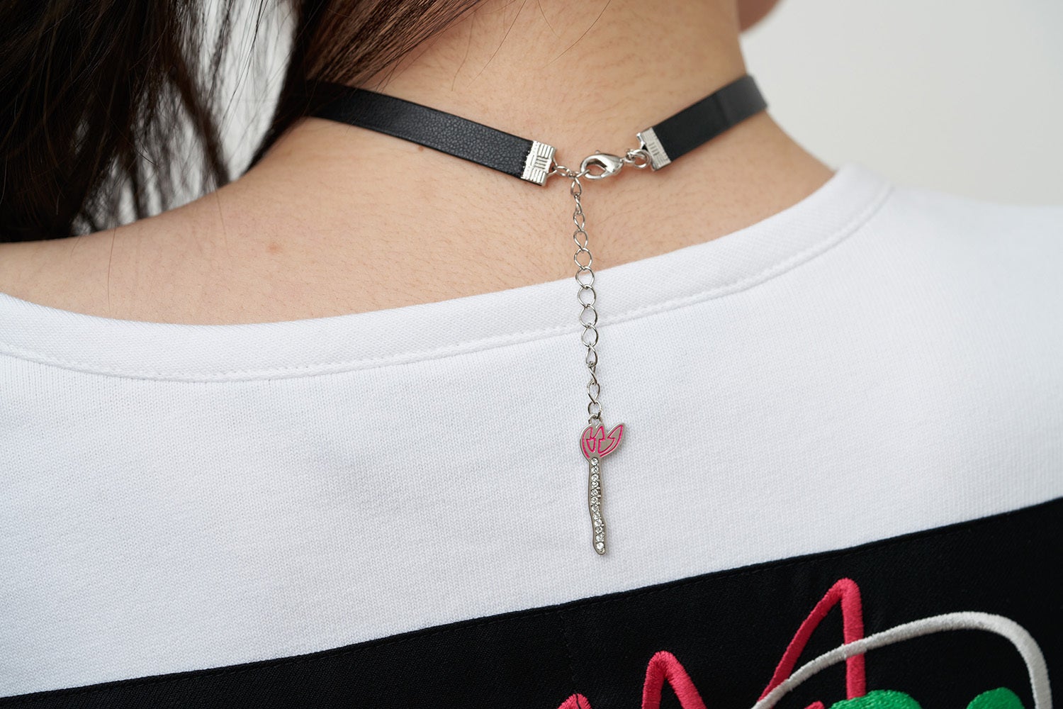 ▶ 青いクリスタルの瞳を持ったデビル・ラビットの顔と黒いクリスタルがあなたの首に視線を集中させます。レザー素材で首を包んでくれるチョーカーネックレスは、長さを自由自在に調節でき、調整する部分にはピンクの三枝槍があり、後ろ姿まで個性的に演出ができます。