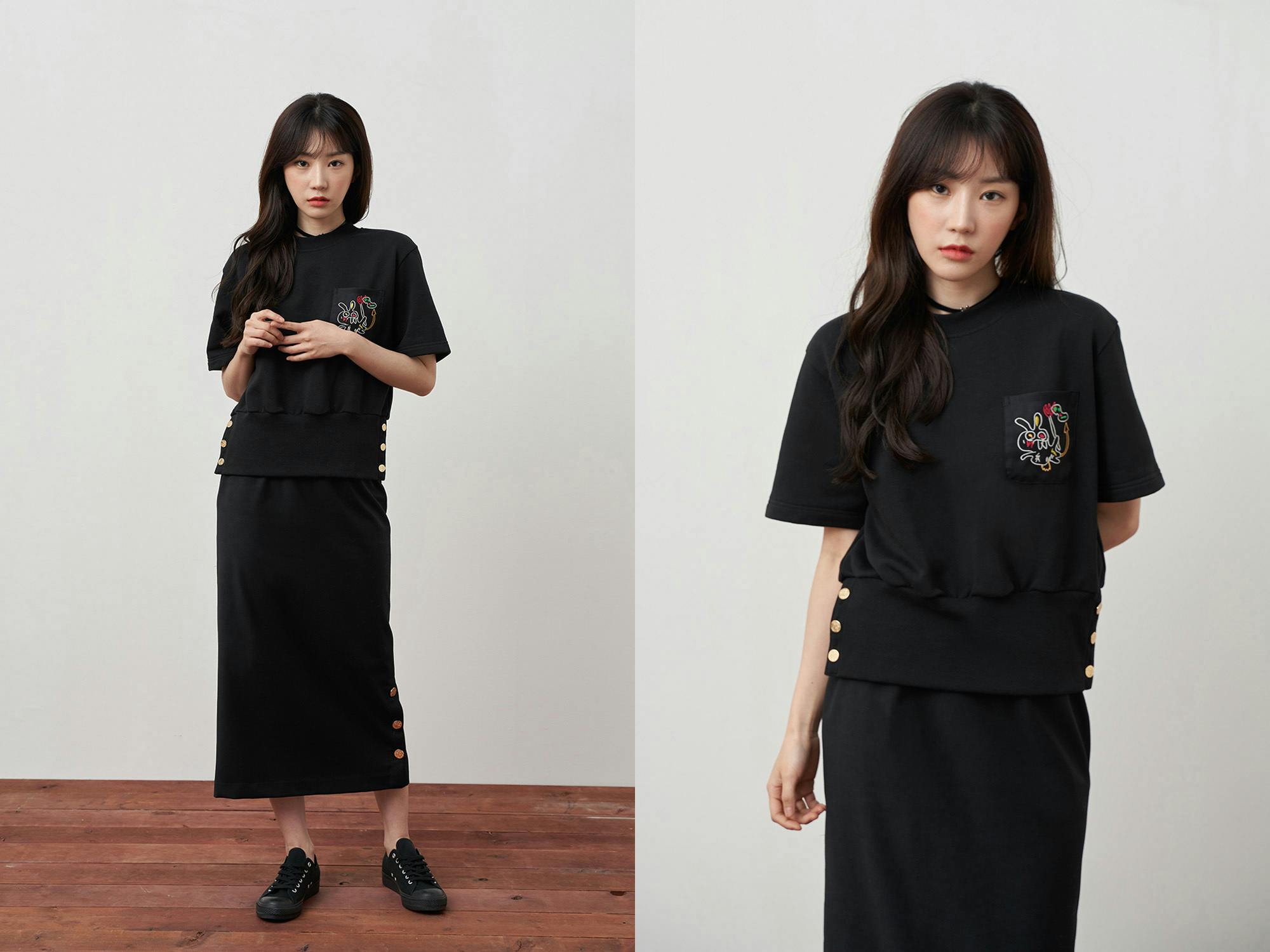 ▲ COLOR : BLACK、WHITE(165cm / 45kg / モデル着用サイズ : XS(44))
