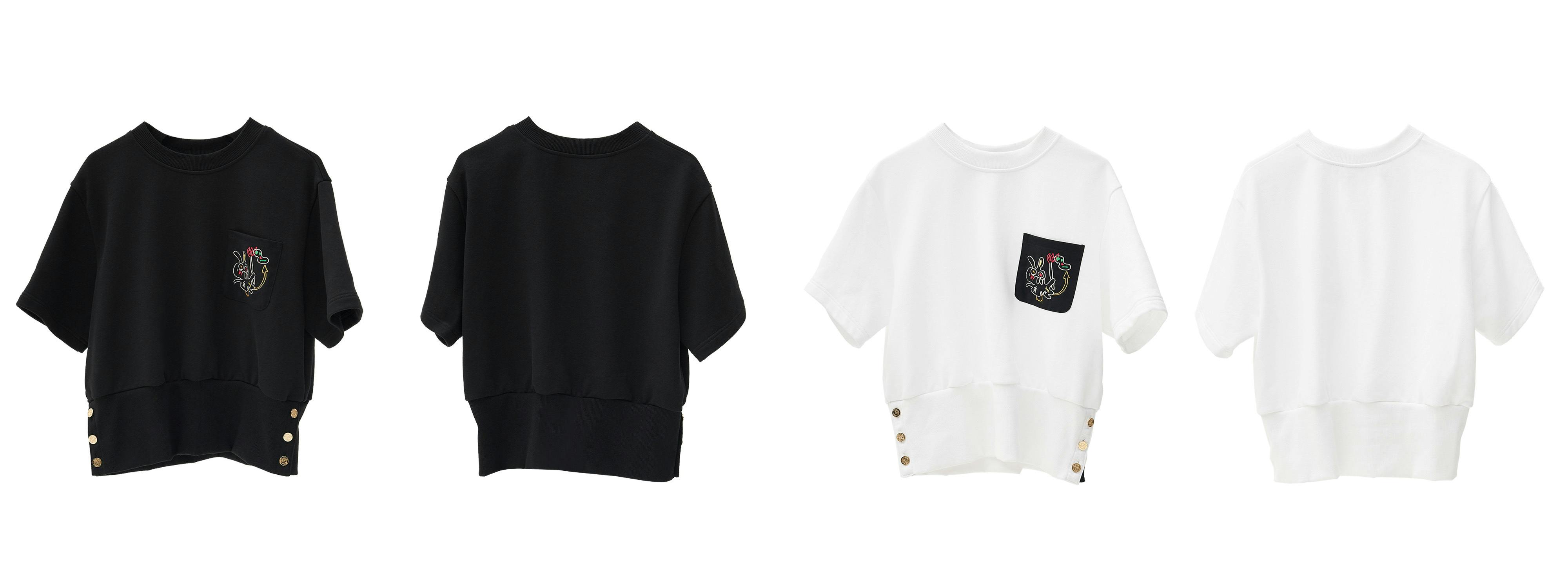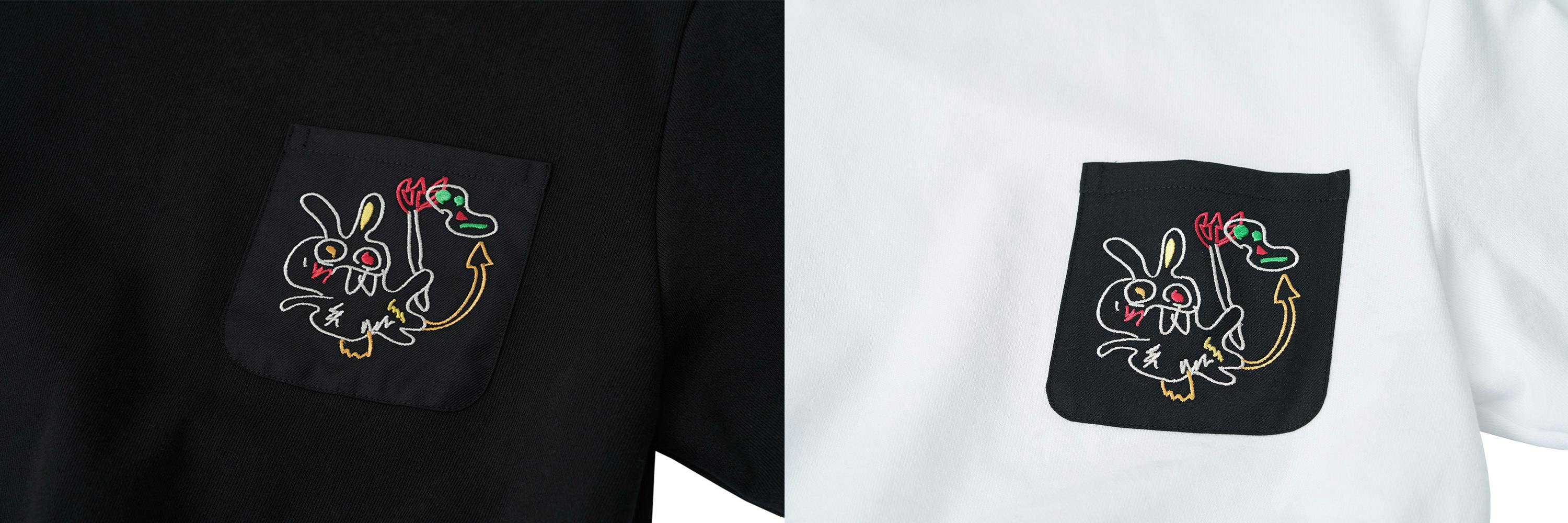 アプリケ(appliqué)は、2つ以上の異なる素材を繋げるという意味をもつファッション用語です。Tシャツとワンピースには100%ウールの刺繍が背面に大きく入っているのが特徴です。デビル・ラビットの刺繍は、自分の個性をしっかりと表現したい人達におすすめです。どこにいても周りから注目を集める素敵なファッショニスタになれます。